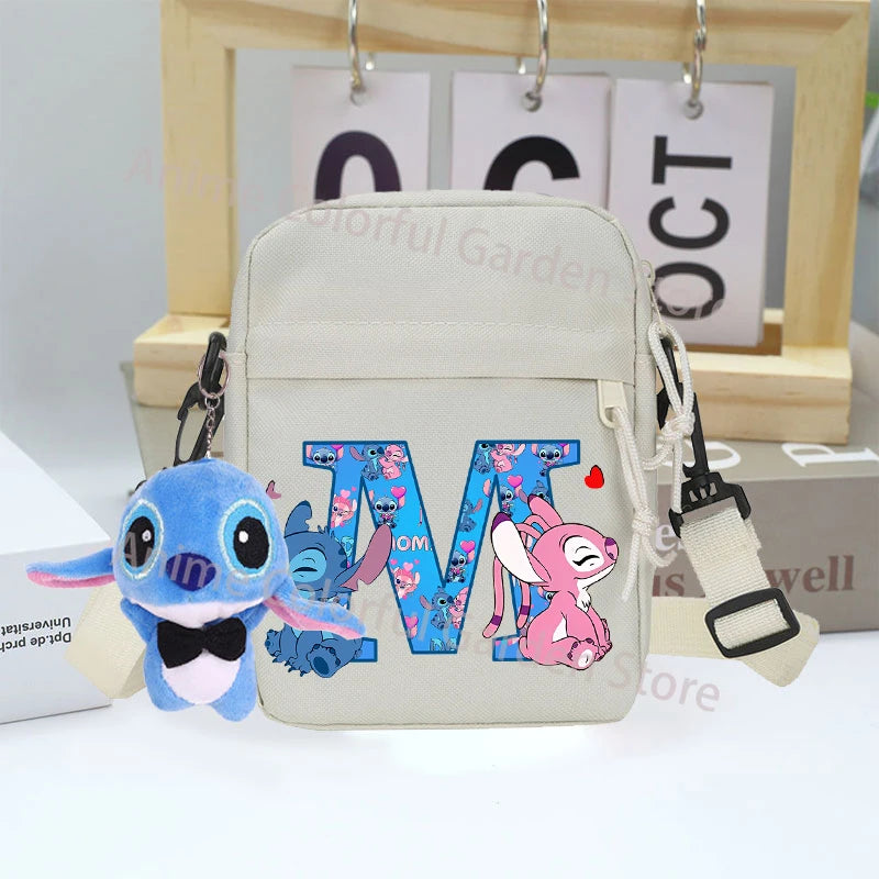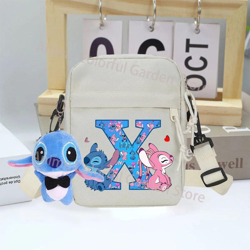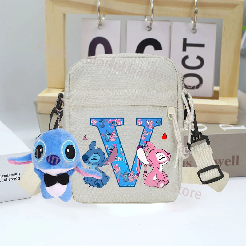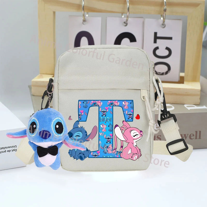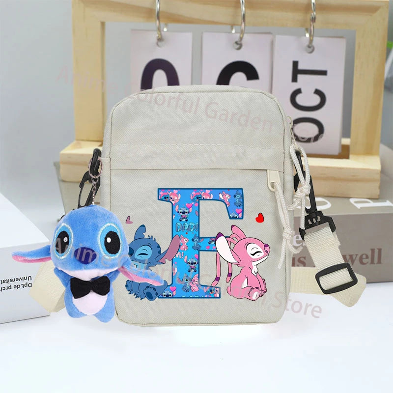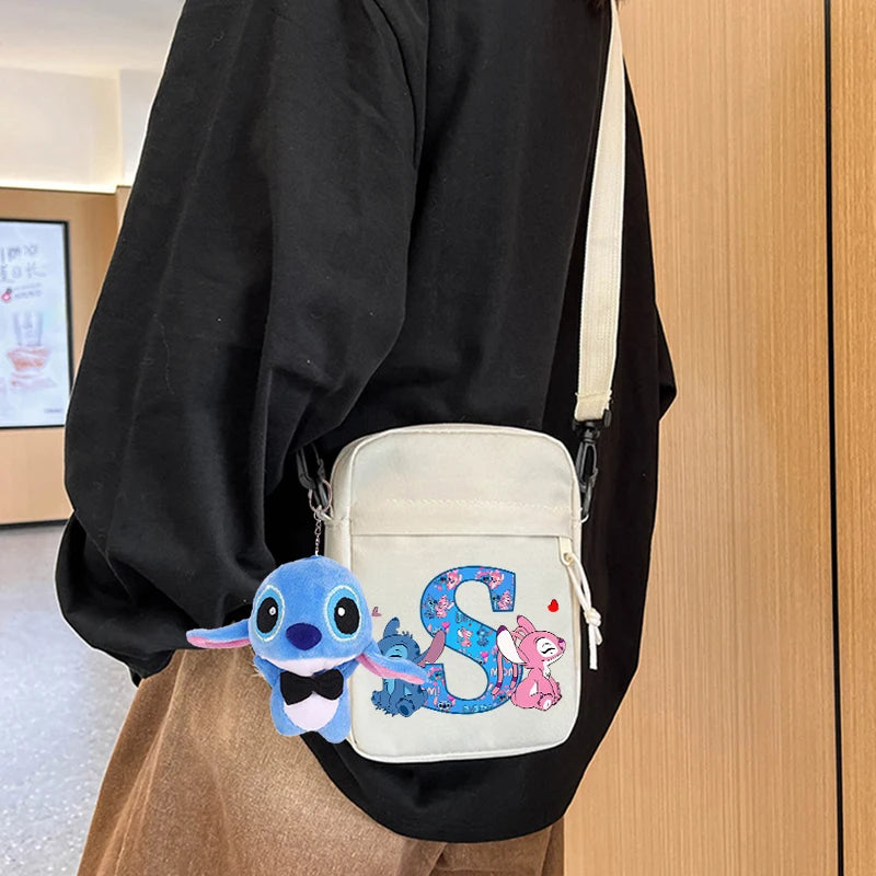 Disney Stitch Canvas Shoulder Bags with Doll Cartoon Letter A-Z Printed Fashion Handbag Multi Pocket Zipper Crossbody Bag Gifts