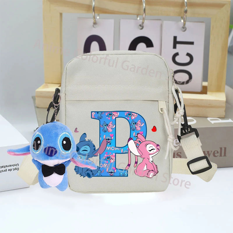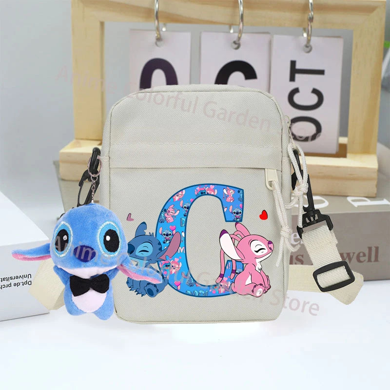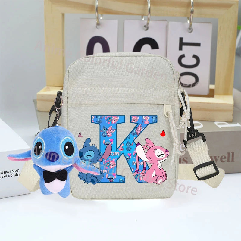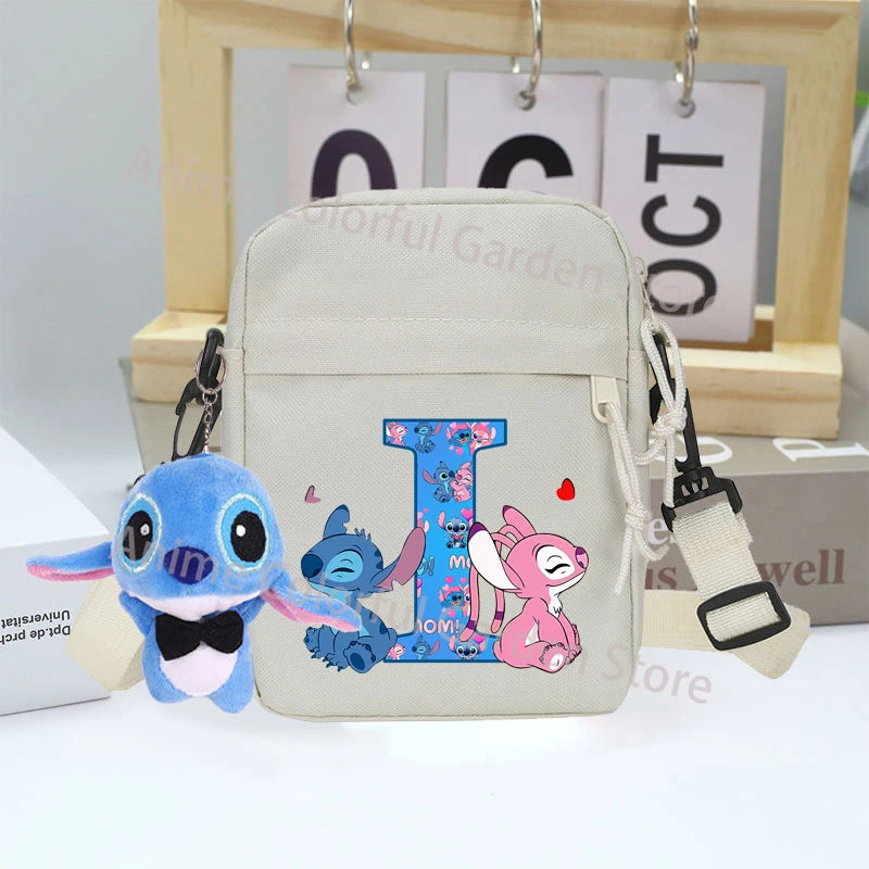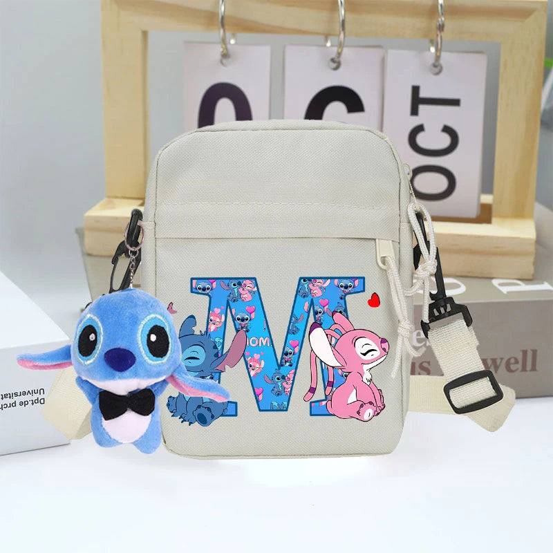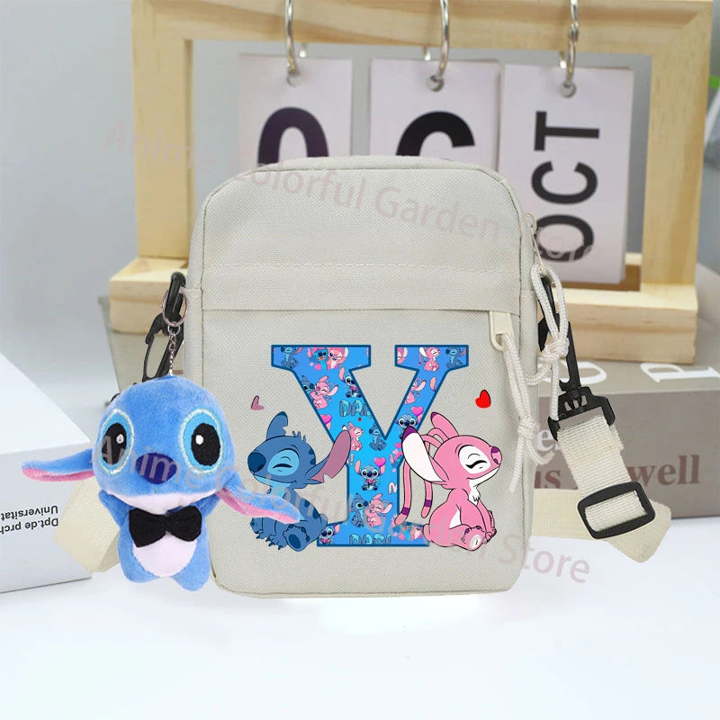Disney Stitch Canvas Shoulder Bags with Doll Cartoon Letter A-Z Printed Fashion Handbag Multi Pocket Zipper Crossbody Bag Gifts