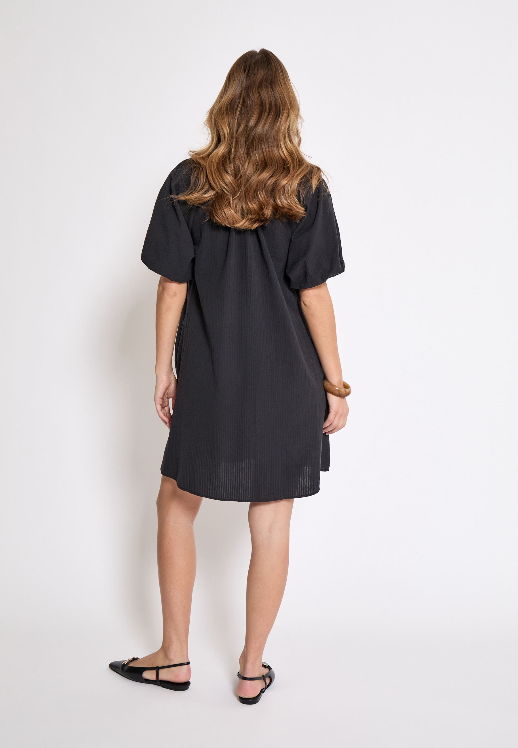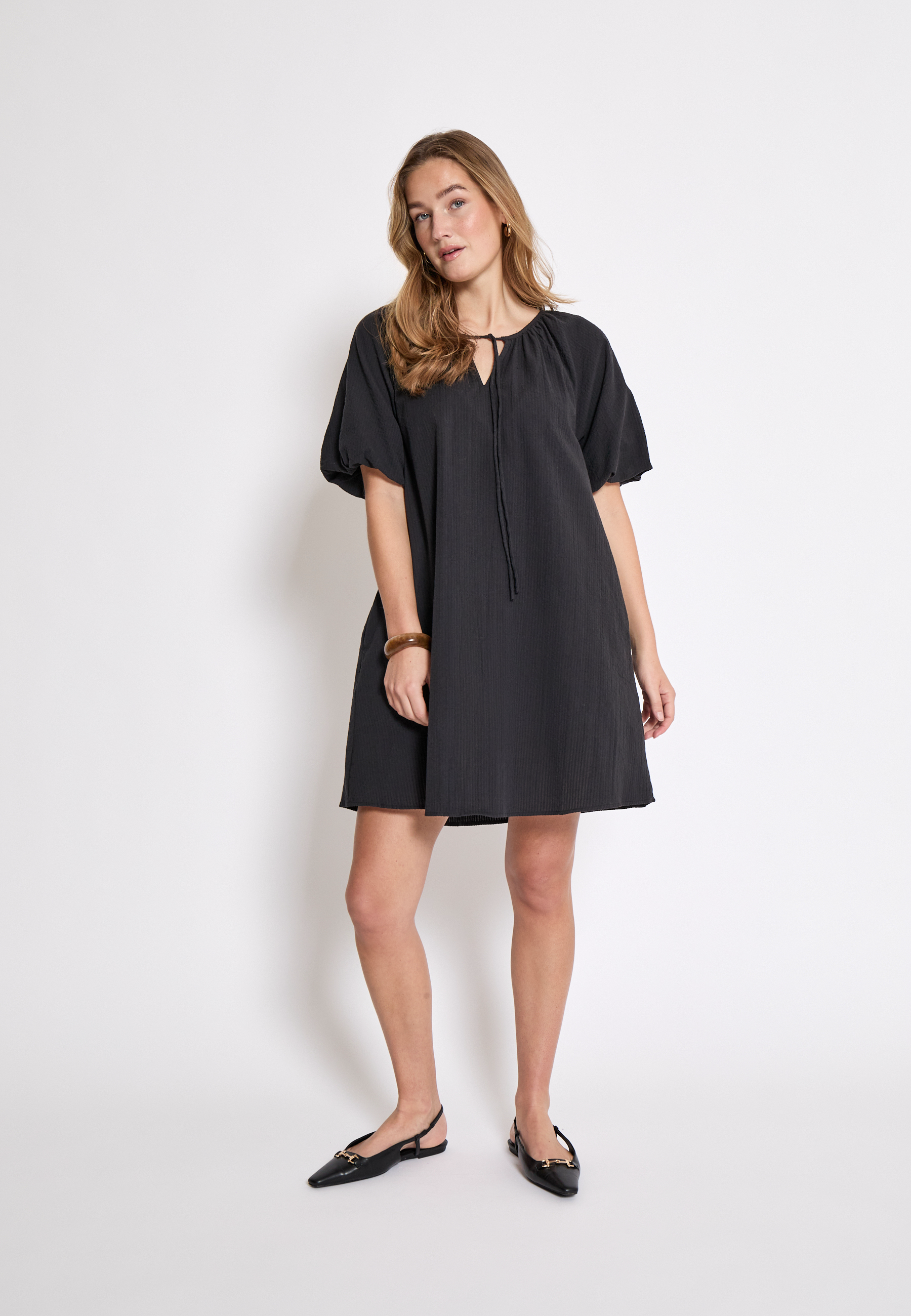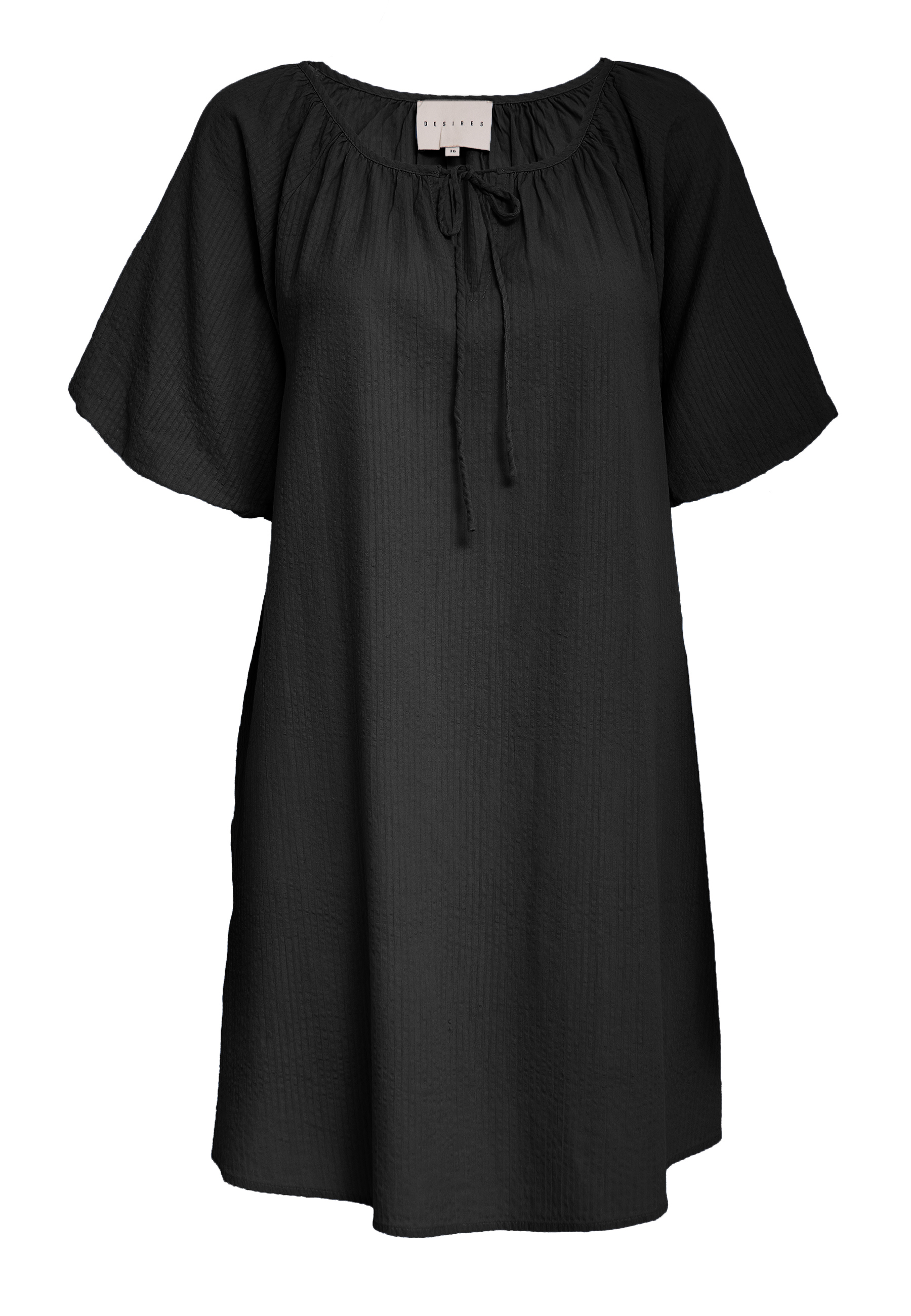 DSGeorgia-kjolen fra Desires er den perfekte kombination af komfort, stil og feminint udtryk. Den har fine pufærmer, der giver kjolen et romantisk og moderne præg samt bindebånd ved halsen, som kan styles åbent for en afslappet V-hals eller lukkes for et mere klassisk look.