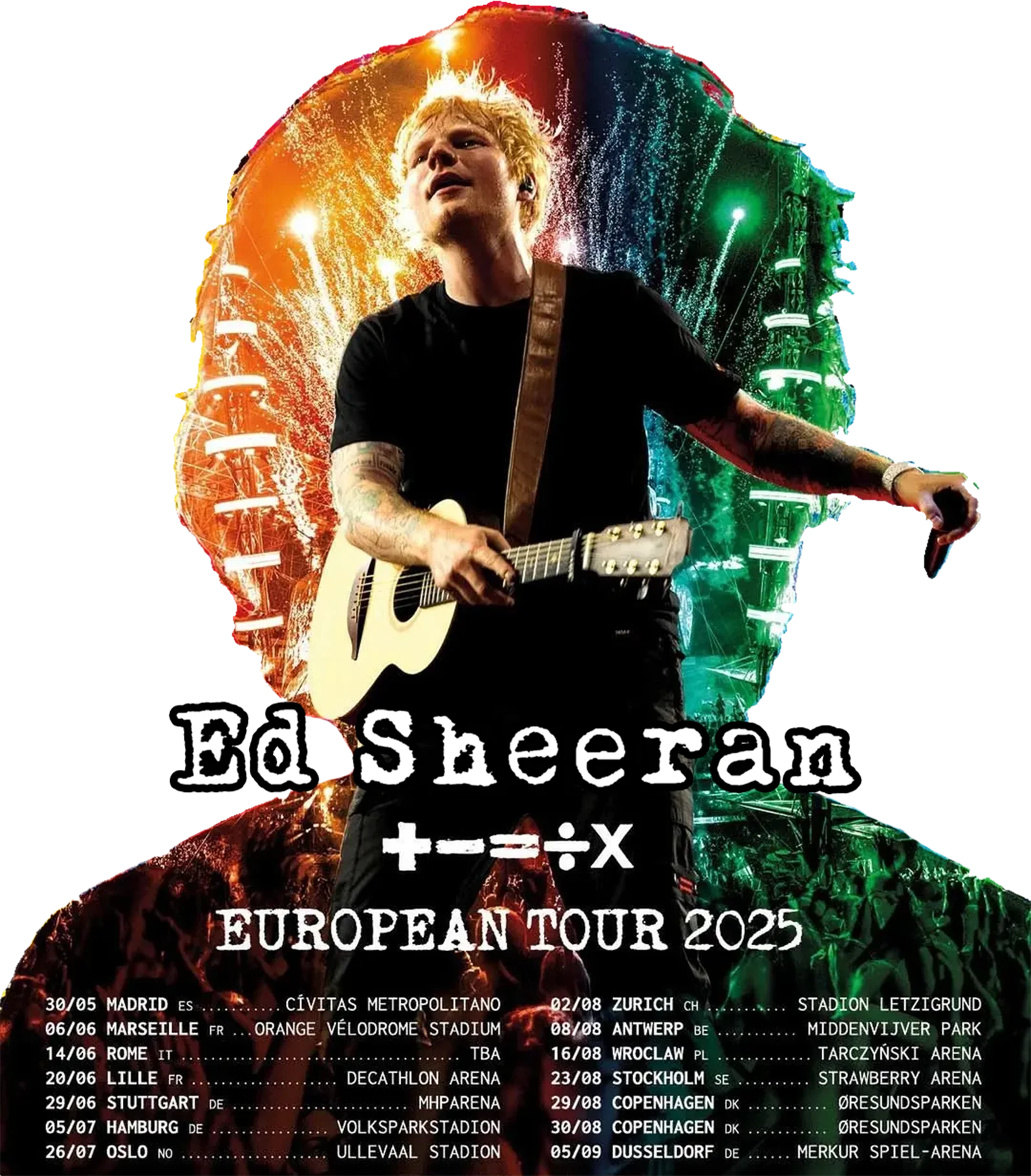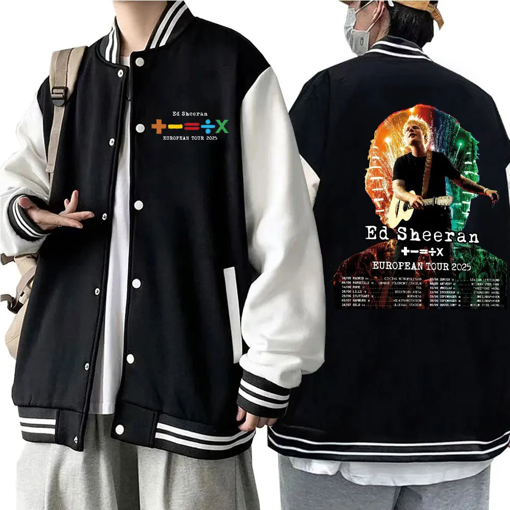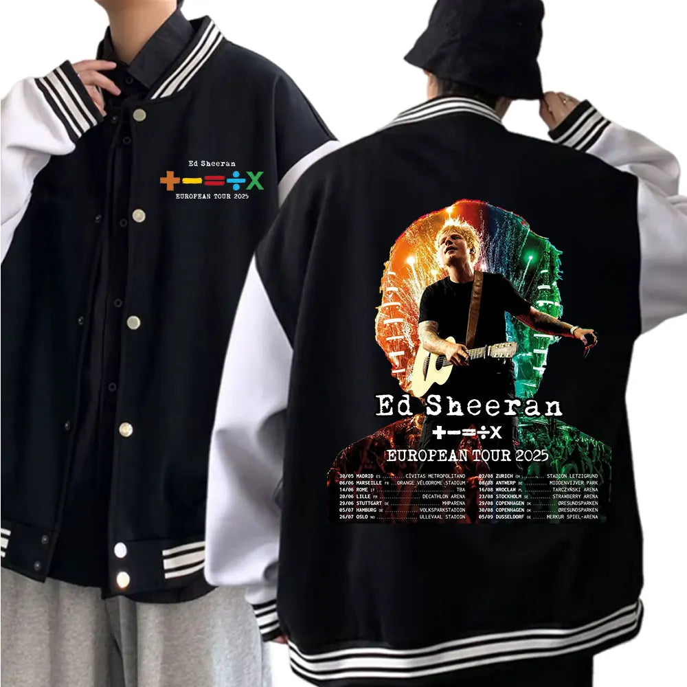 Ed Sheeran European Tour 2025 Baseball Uniform Hoodie Jacket Harajuku Baseball Jacket Coat Unisex