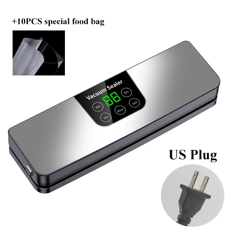 Electric Vacuum Sealer Machine Dry/Wet Food Packaging Seal To Keep Fresh Touch Buttons Digital Display Detachable Cleaning