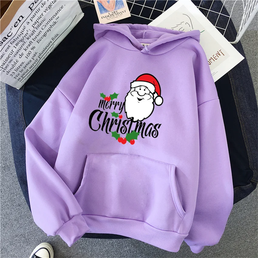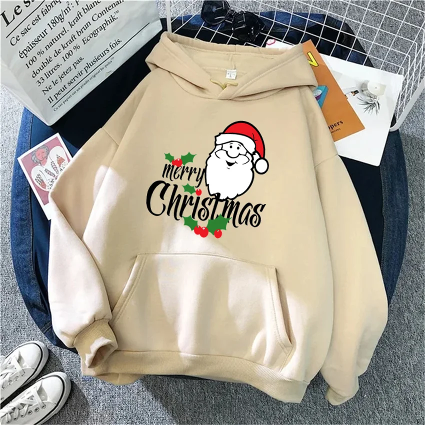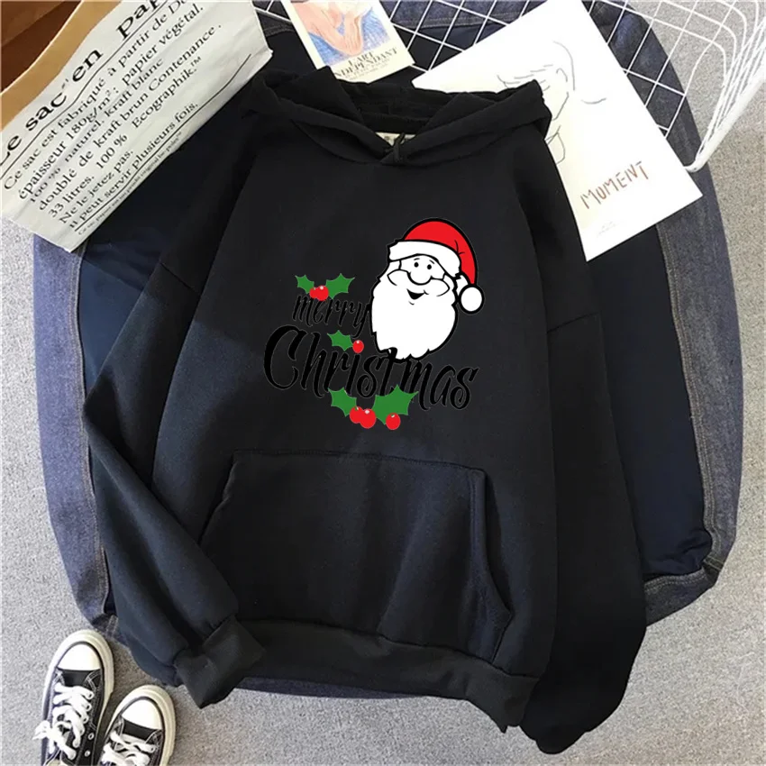 Fashion Womens Hoodie Santa Claus Print Funny Hoodies Women Streetwear Pullover Harajuku Sweatshirt Oversized Clothes Unisex Top