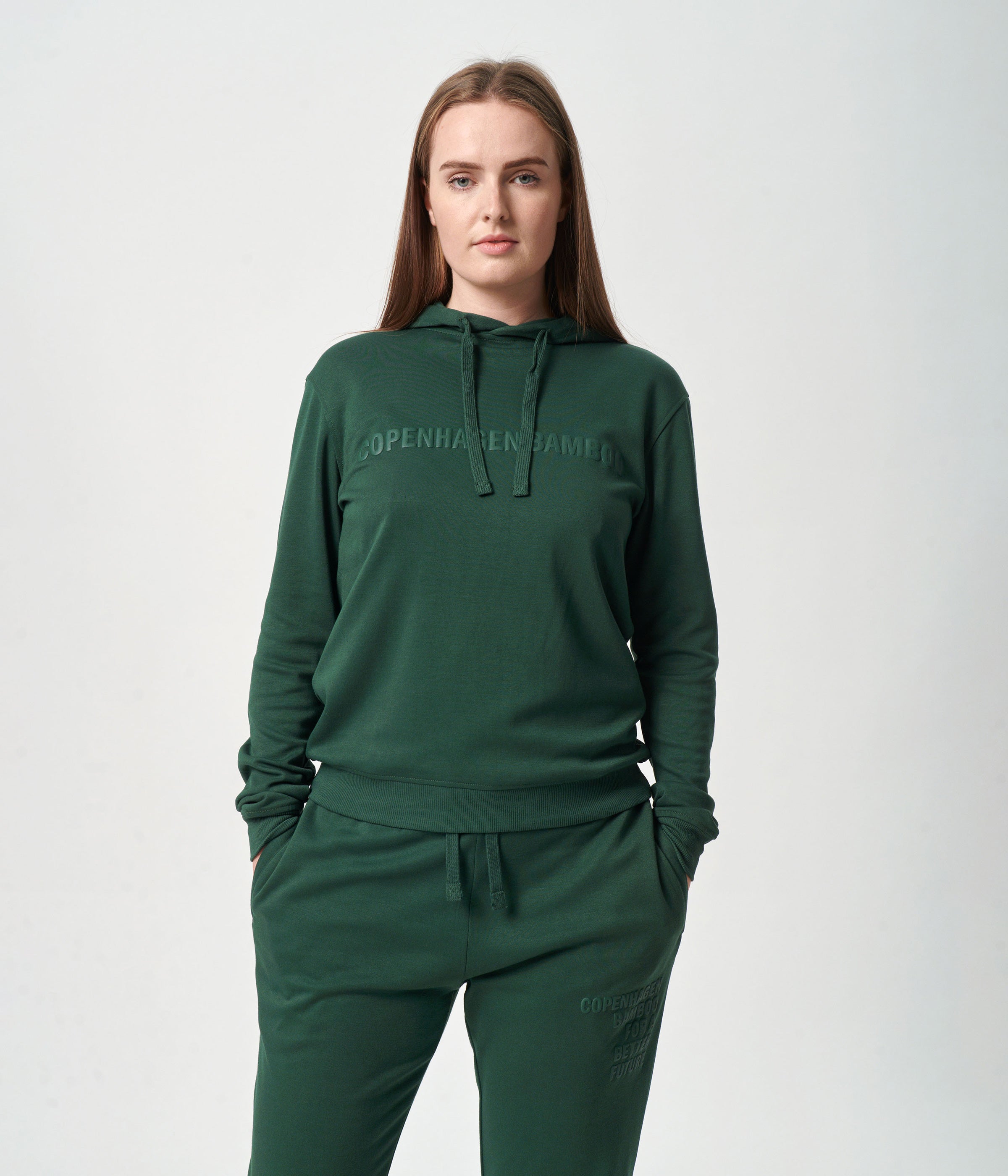 Grøn unisex bambus hoodie med logo print hen over brystet. Denne hoodie er fremstillet i bambusviskose, økologisk bomuld og genanvendt... Read more