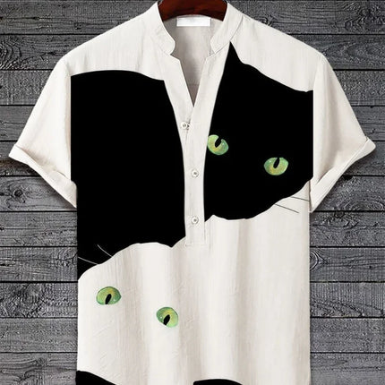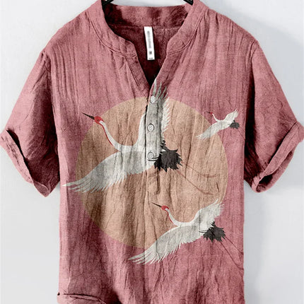 Henry men's casual fashion outdoor seaside men's tops shirt V-neck linen shirt 2024 new plus size