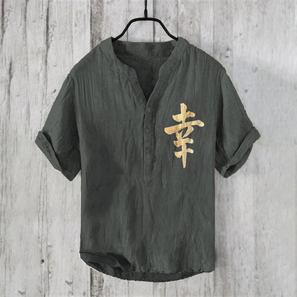 Henry Shirt - Men's new short sleeved casual T-shirt, Japanese style clothing top, casual digital print, sizes s to 5XL