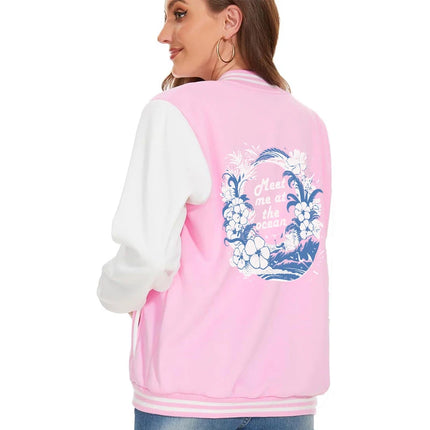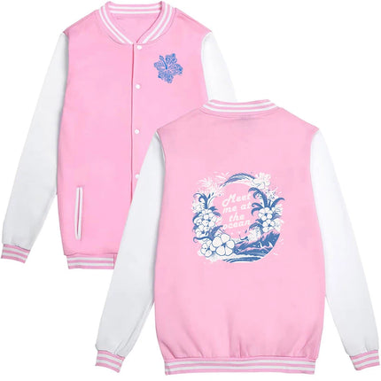 Hibiscus Flower Lover Classic Baseball Jacket Girl Meet Me At The Ocean Girls Fashion Overcoat Ocean Beach Vacation Gift Jackets