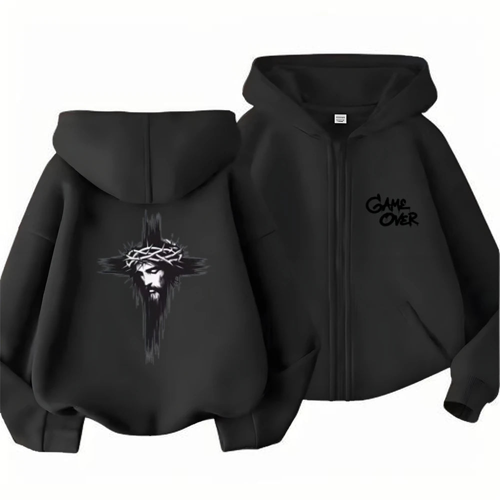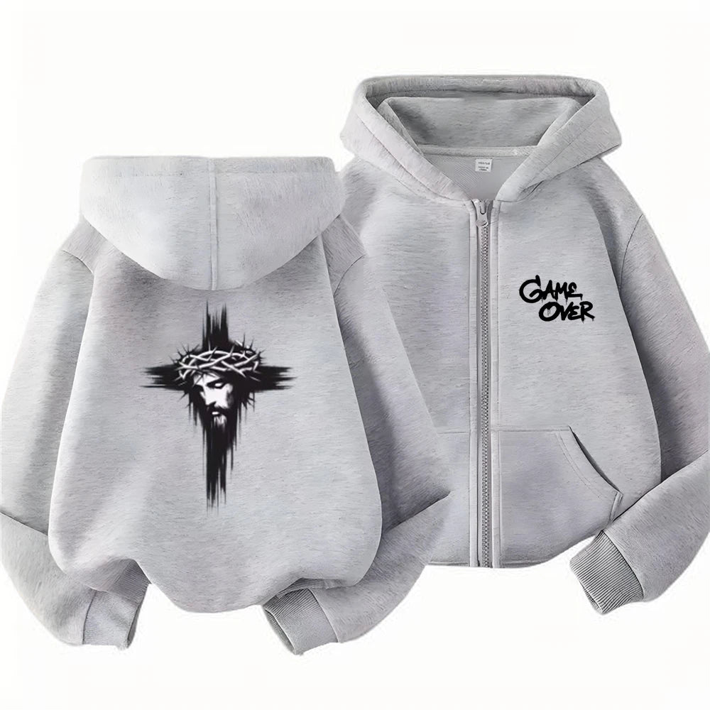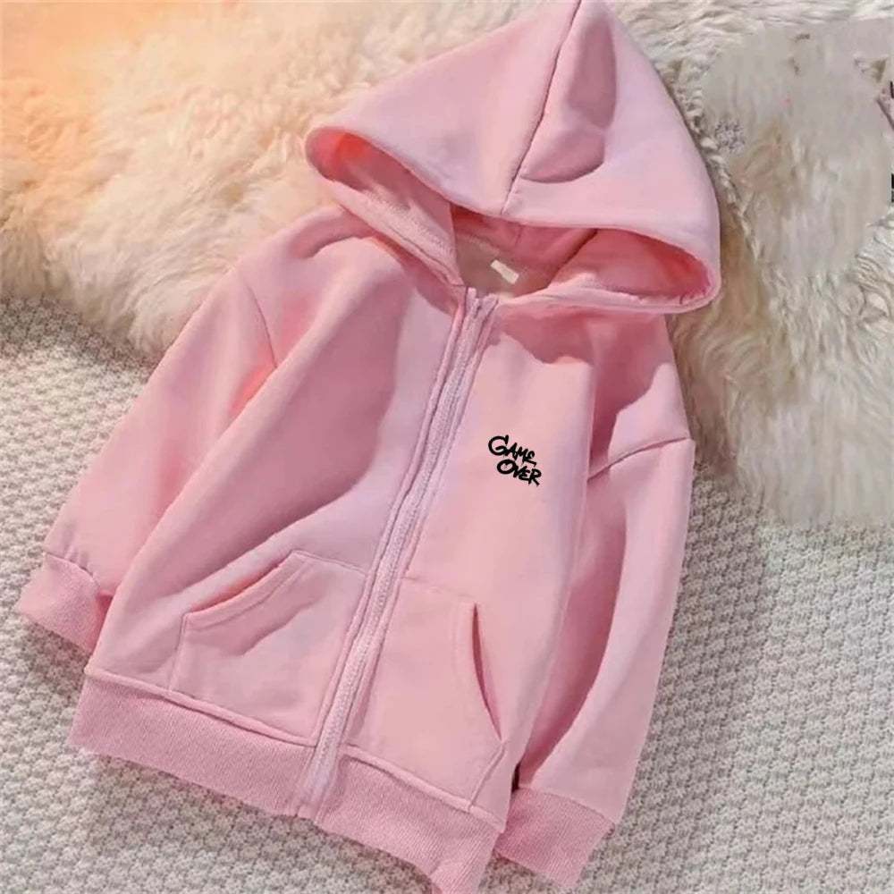 Hip Fashion Hop Trend Street Art Print Hoodies Coat Children Zipper style Sweatshirt Girls Boys Age 3-12 Kids black Pink