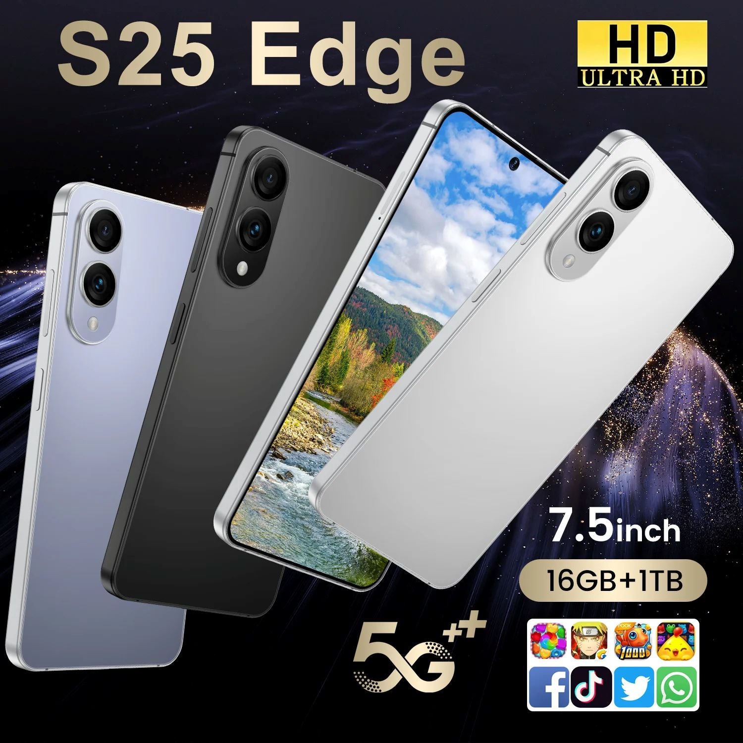 Hot Selling S25 Edge 5G LTE Multilingual Smartphone 7.3 Inch HD 120Hz Full Display Deca Core Snapdragon 800 Series 108MP Android