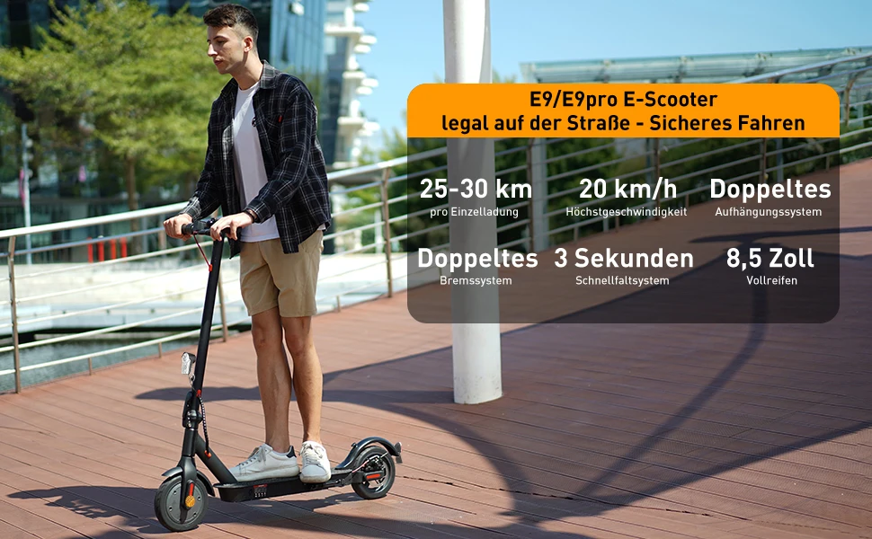 isinwheel E9 pro (ABE) adult electric scooter 350W motor 36V 7.5Ah battery electric scooter 8.5 inch tire city electric scooter