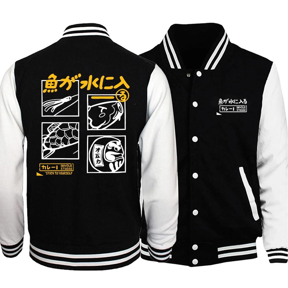 Japanese Retro Fashion Fish Jackets Man Fashion Hip Hop Baseball Uniform Personality Casual Jacket Warm Soft S-5Xl Clothing Male
