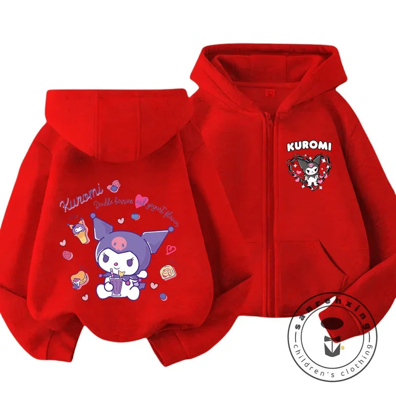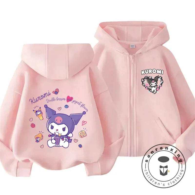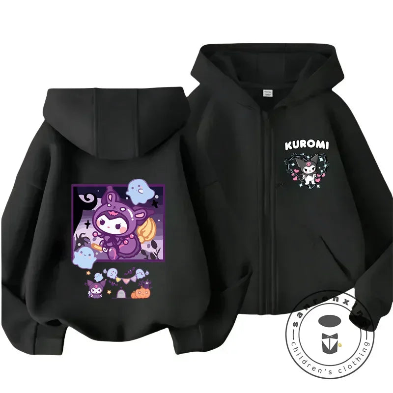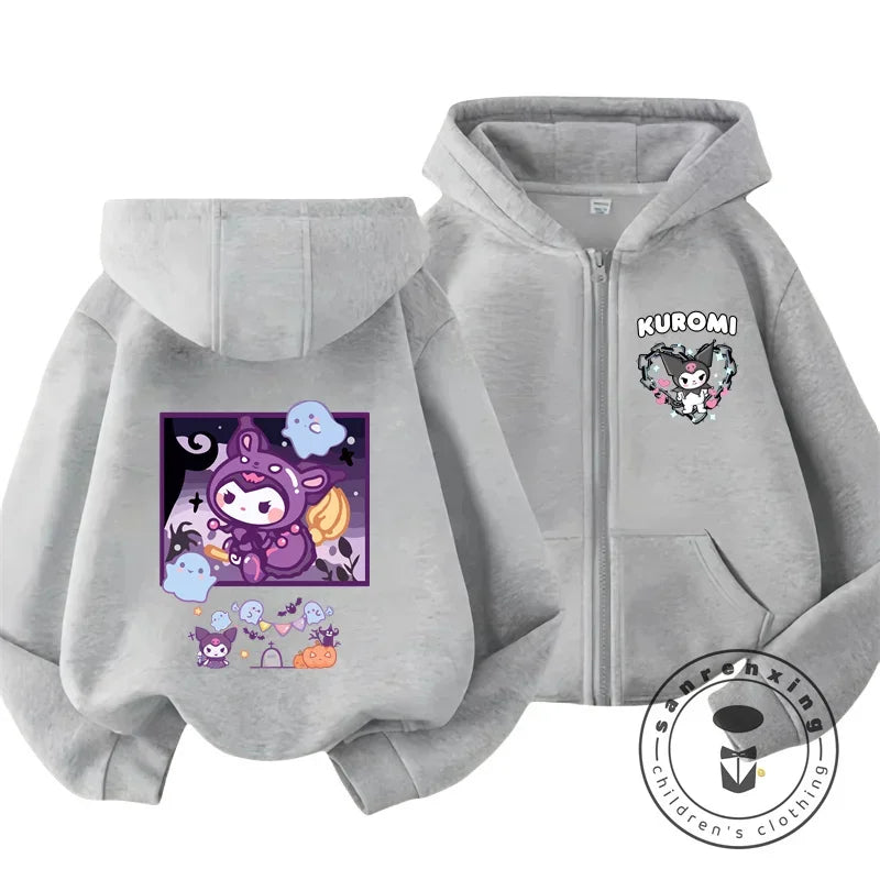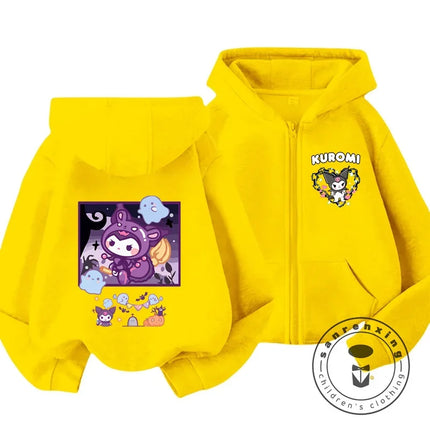 Kids Girls Kuromi Anime Hoodies Long Sleeve Sweatshirts Children Autumn and Winter 3 14 Years Old Cartoon Casual Hooded Tops