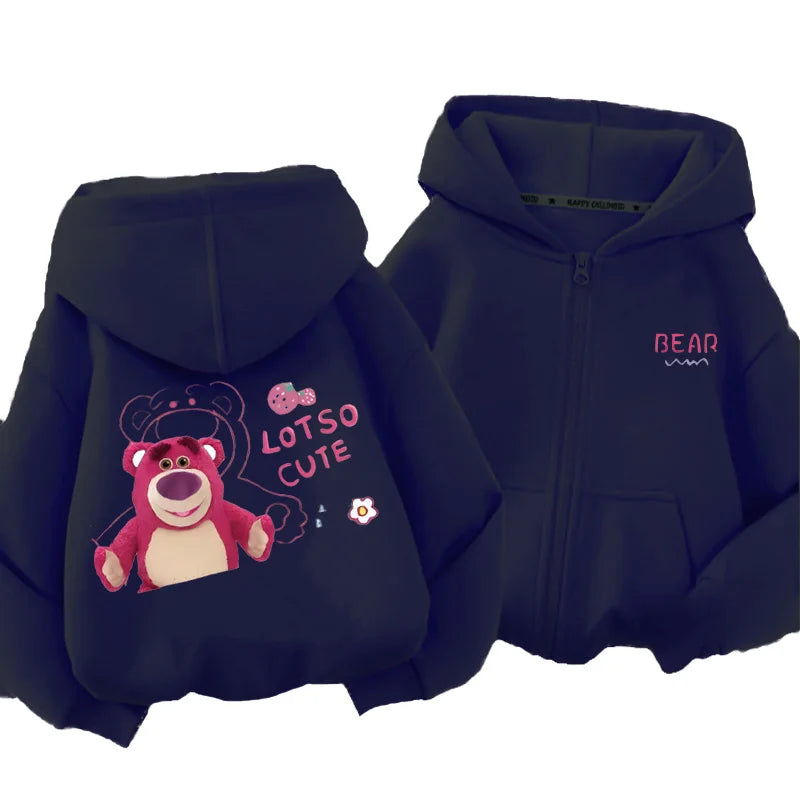 Kids Spring and Autumn Cardigan Men's and Women's Hooded Zipper Top 3-12 Year Old Kids Casual Sports Cardigan Strawberry Bear