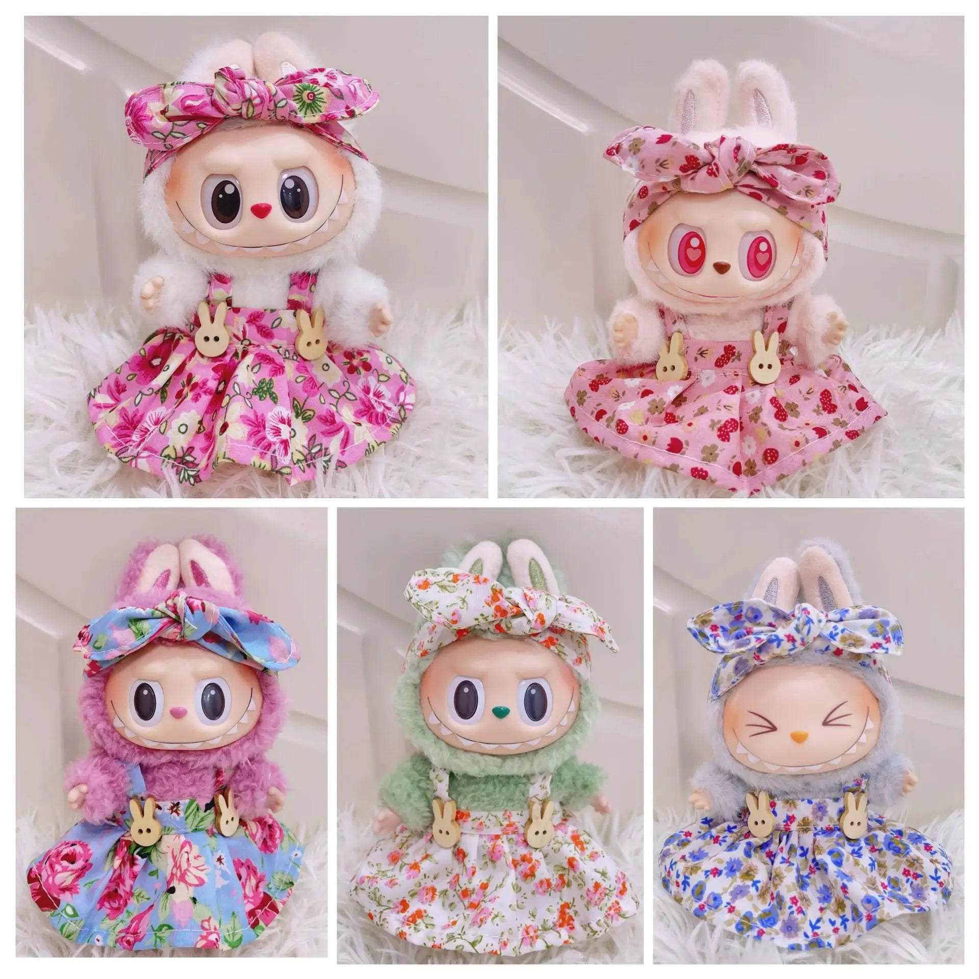 Labubu 15cm/17cm Doll Clothing Sitting Party Strawberry Tank Top Skirt Paired With Princess White Shoes Princess Baby Clothes
