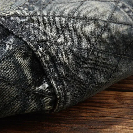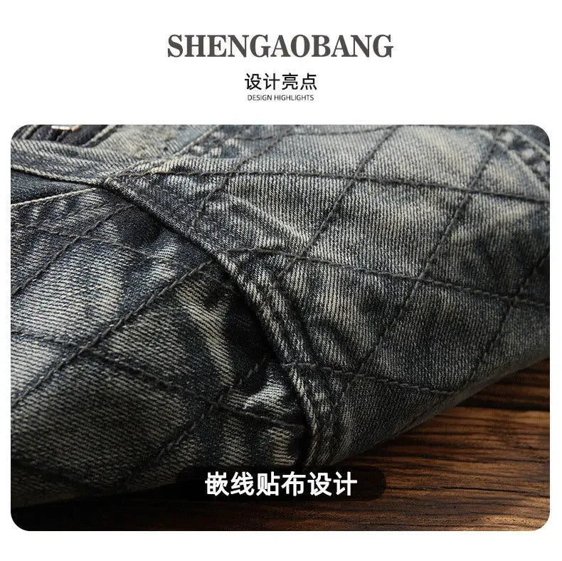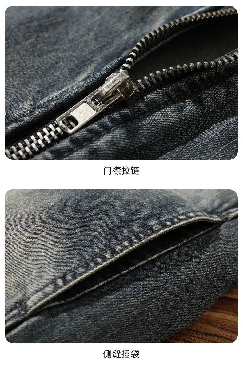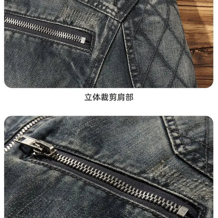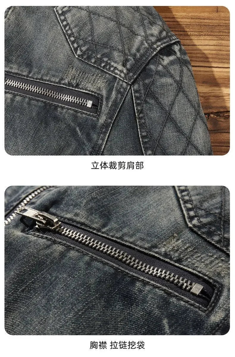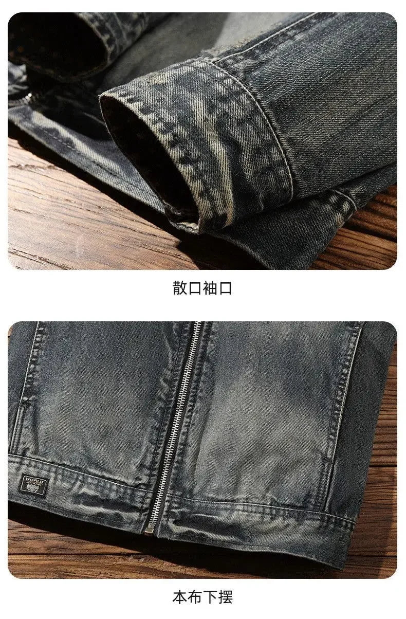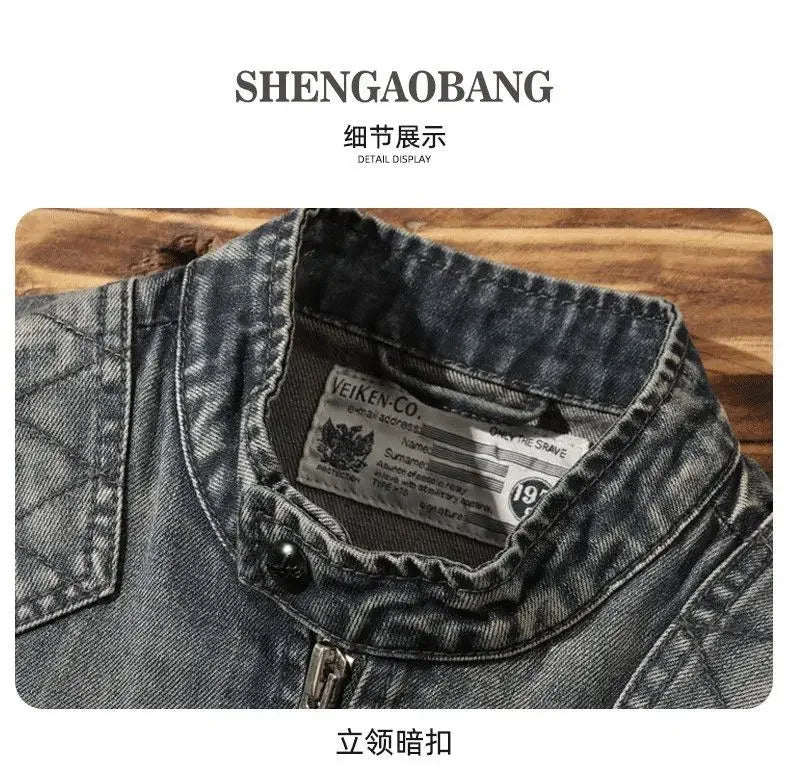 Luxury retro standing collar denim jacket for men's spring and autumn trendy brand loose oversized motorcycle jacket cotton