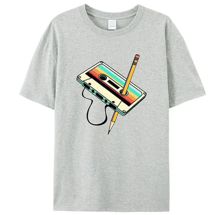 Men Short Sleeve 80s Cassette Tape Pencil 1980s Retro Vintage Throwback Music T-Shirt Women Clothing Vintage T Shirt Camisetas