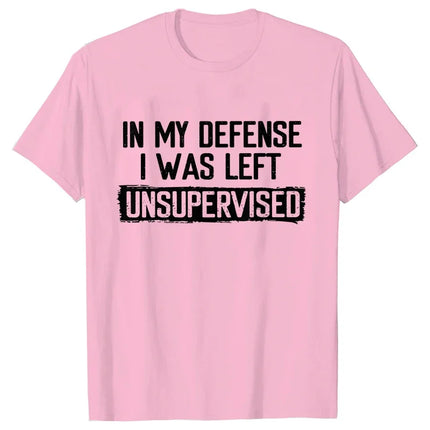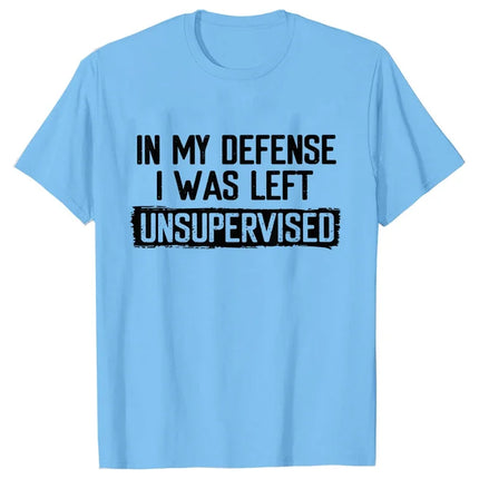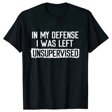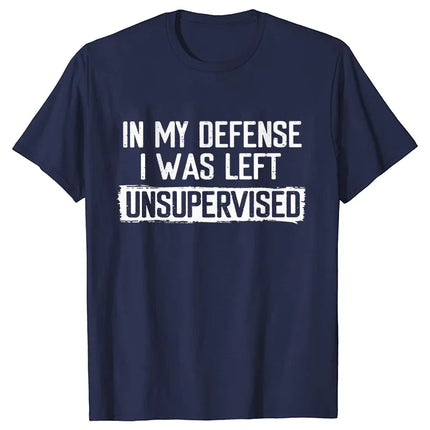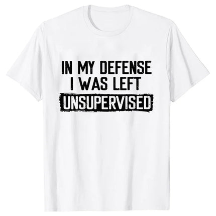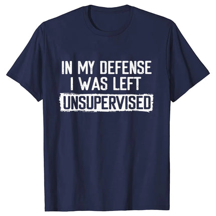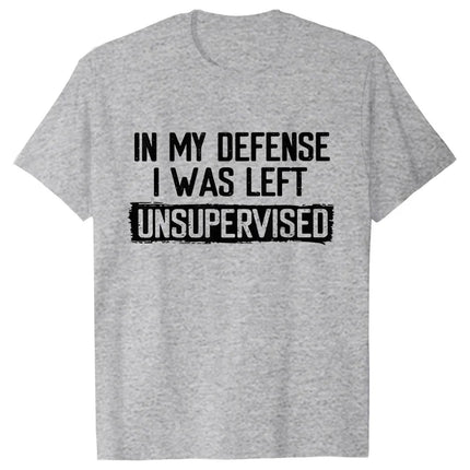 Men's Funny Shirt in My Defense I Was Left Unsupervised Humor Birthday Mans Tee Short Sleeve O-neck Men's Tee Tshirt Clothing