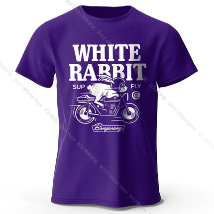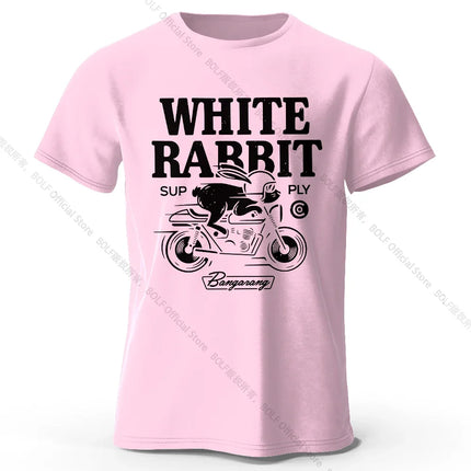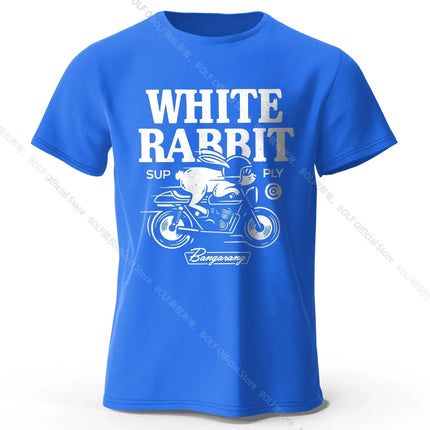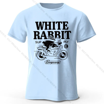 Men's Rabbit Printed T-Shirt 100% Organic Cotton Relaxed Fit Hand Painted Design Tee for Adults Quirky Fashion