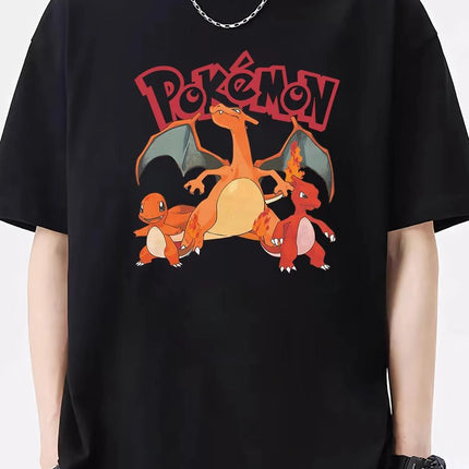 (Miniso) Pokemon Fire Dragon T-Shirt Y2k Tees Men Fashion Kid T-Shirt Top Men Cotton T-Shirt Summer Women T-Shirt Men Clothing