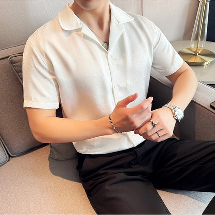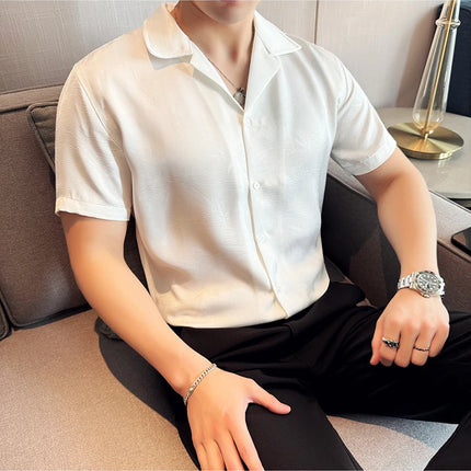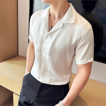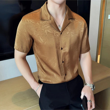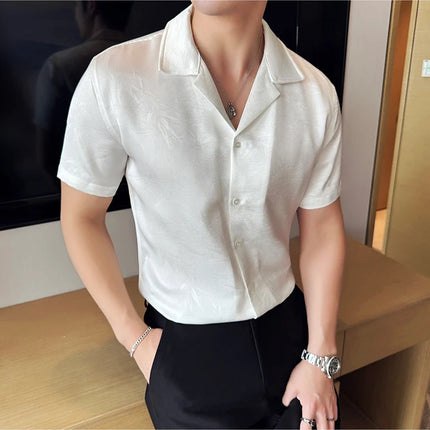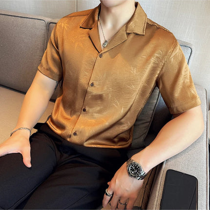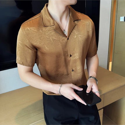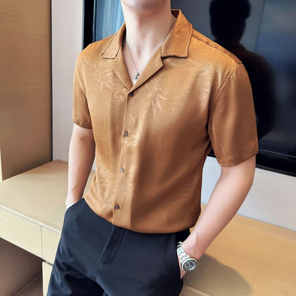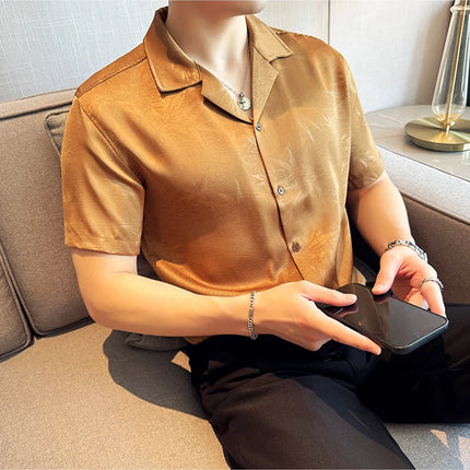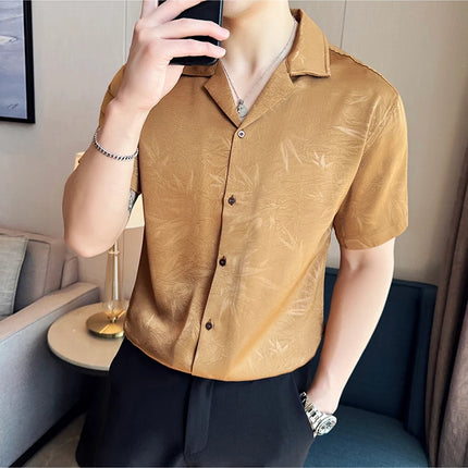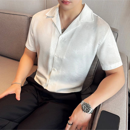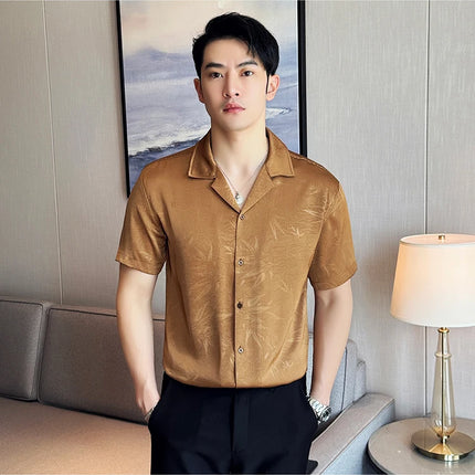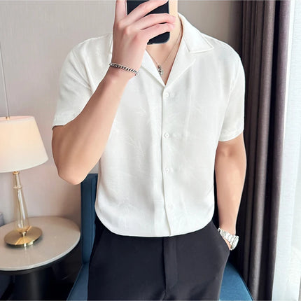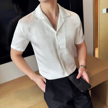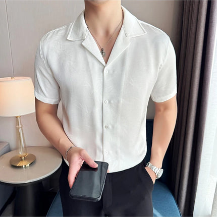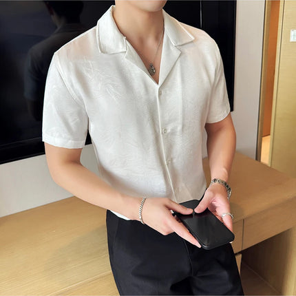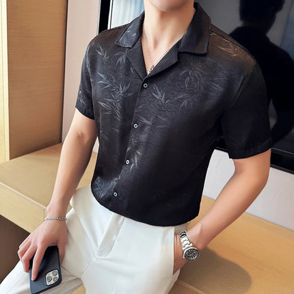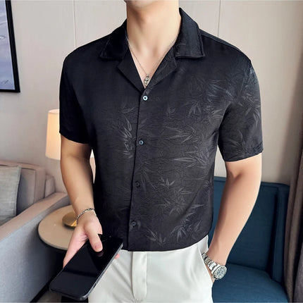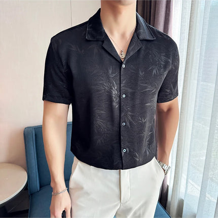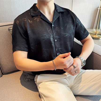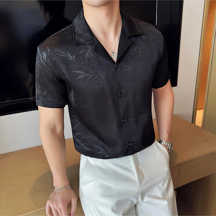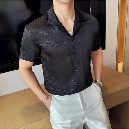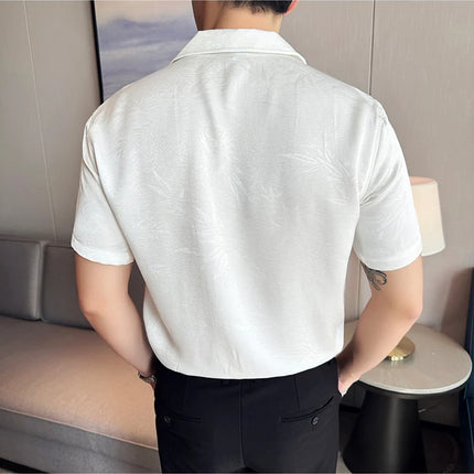 New Chinese Jacquard Shirt Luxury Men Elegant Print Slim Fit Casual Prom Social Shirts High Quality Summer Short Sleeved Tuxedo