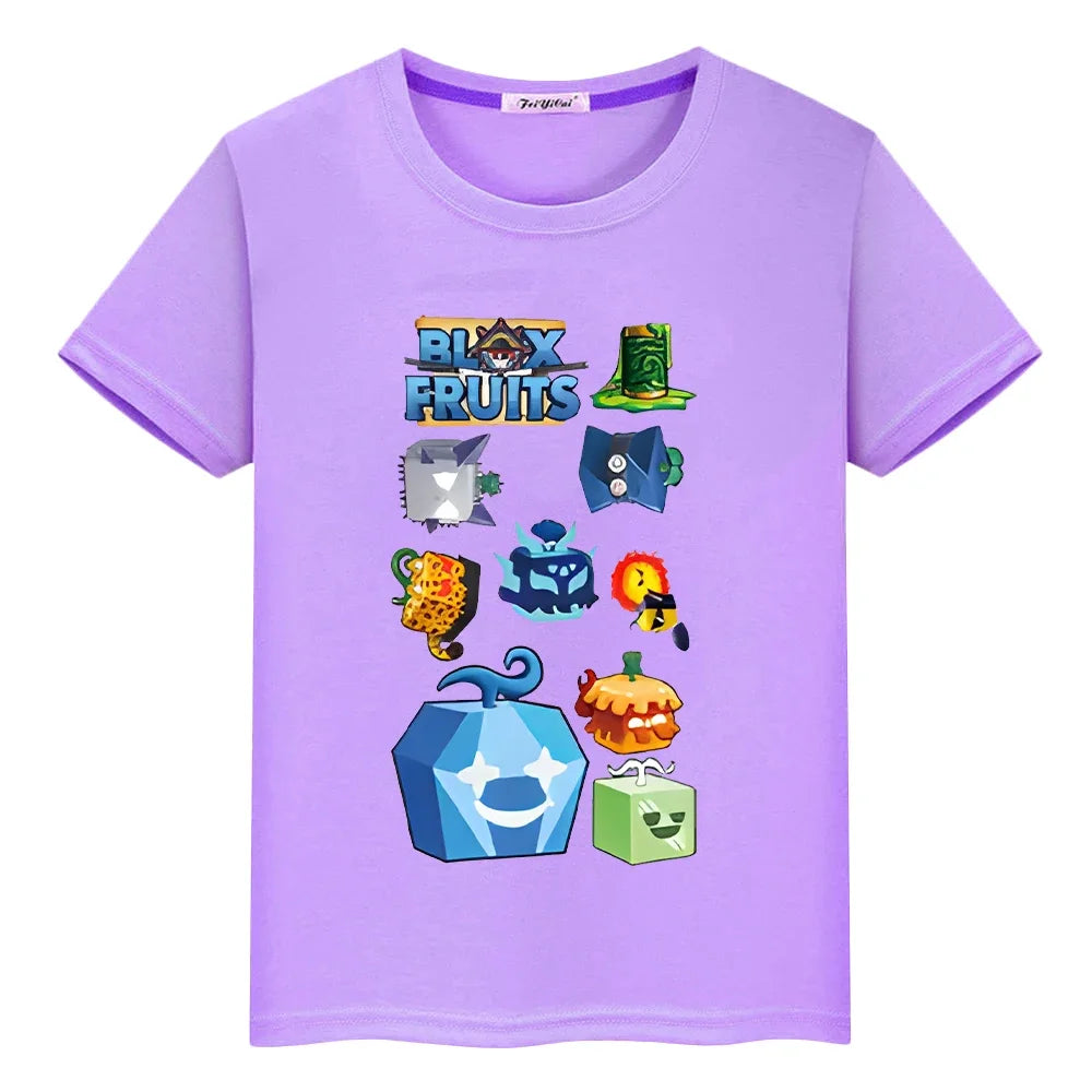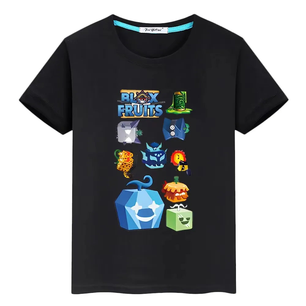 New Game Blox Fruits Short Tops 100%Cotton t shirt for kids boy 10years anime Tees pride tshirt y2k one piece kids clothes girls