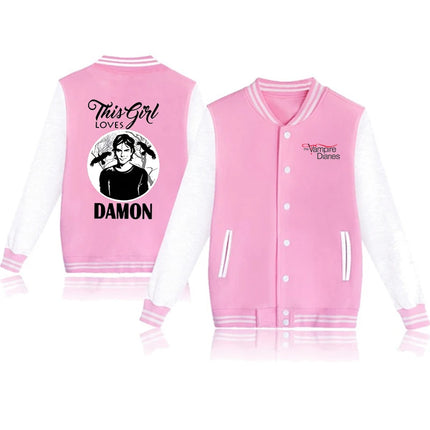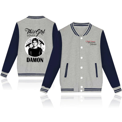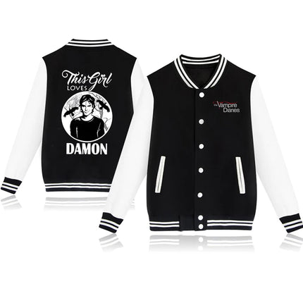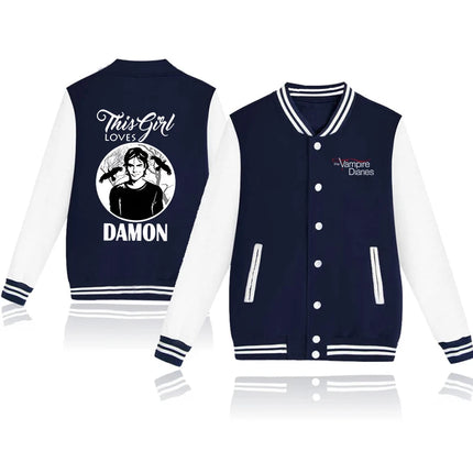 New Hot the Vampire Diary Printing Baseball Uniform Jacket Men Women Y2k Hip Hop Clothing Fleece Warm Sportswear Oversized Coat