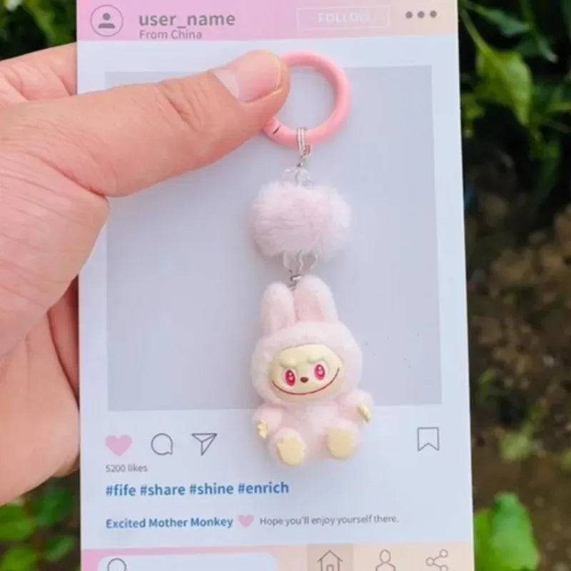 New Mini Standing and sitting postures Monster Car Keychain Flocking doll Bag Cell Phone Charm Pendant Backpack Decoration Gift