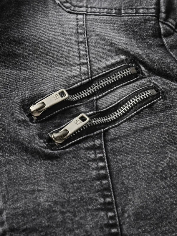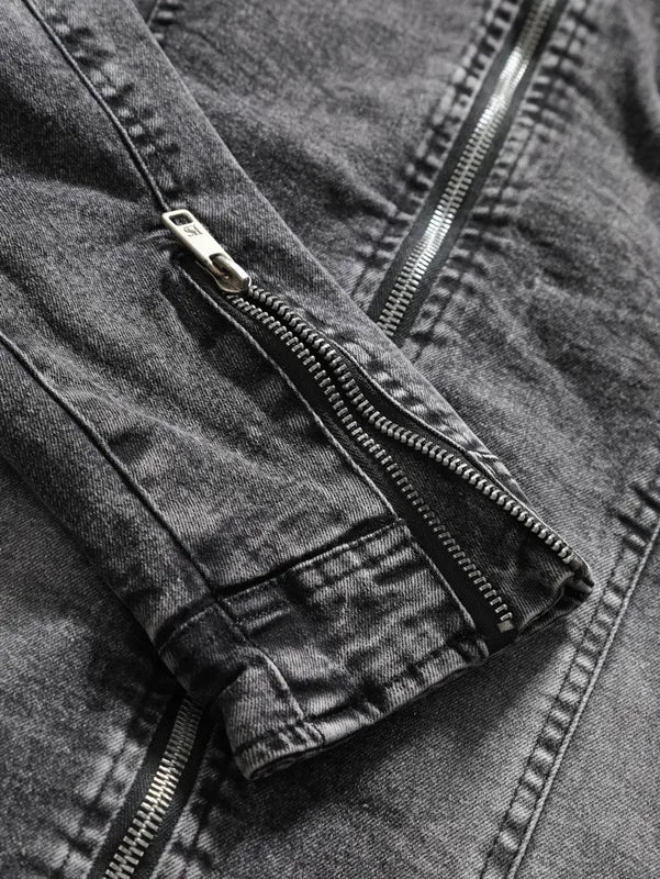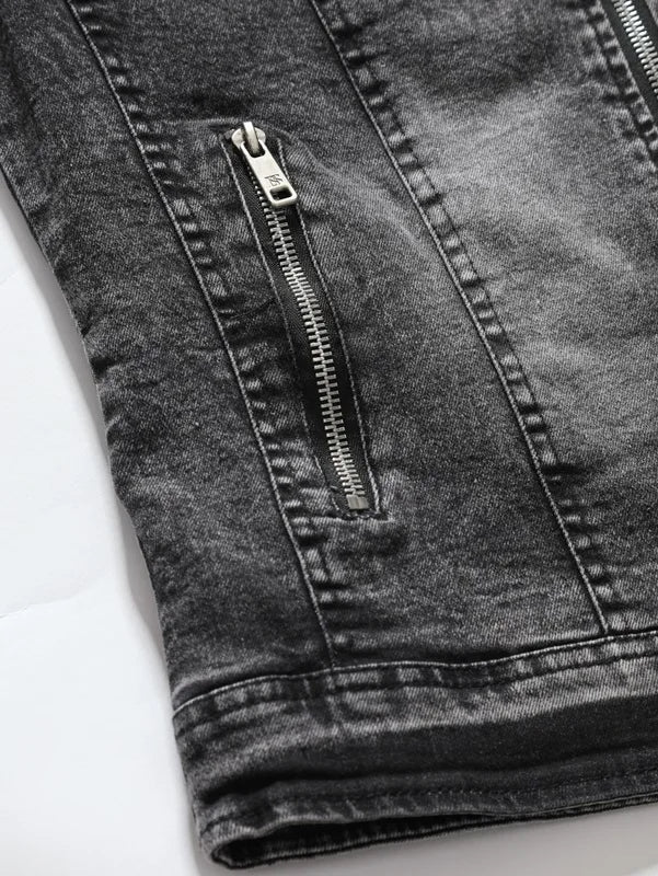 New Motorcycle Denim Jacket Men Retro Zippers Stand Collar Denim Coats Mens Cotton Slim Fit Denim Jacket Moto Biker Outerwear