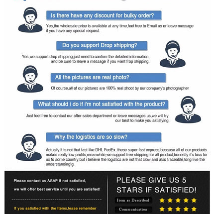 Orders can be returned or exchanged within 30 days of receiving the parcel, providing they are in original resalable condition.