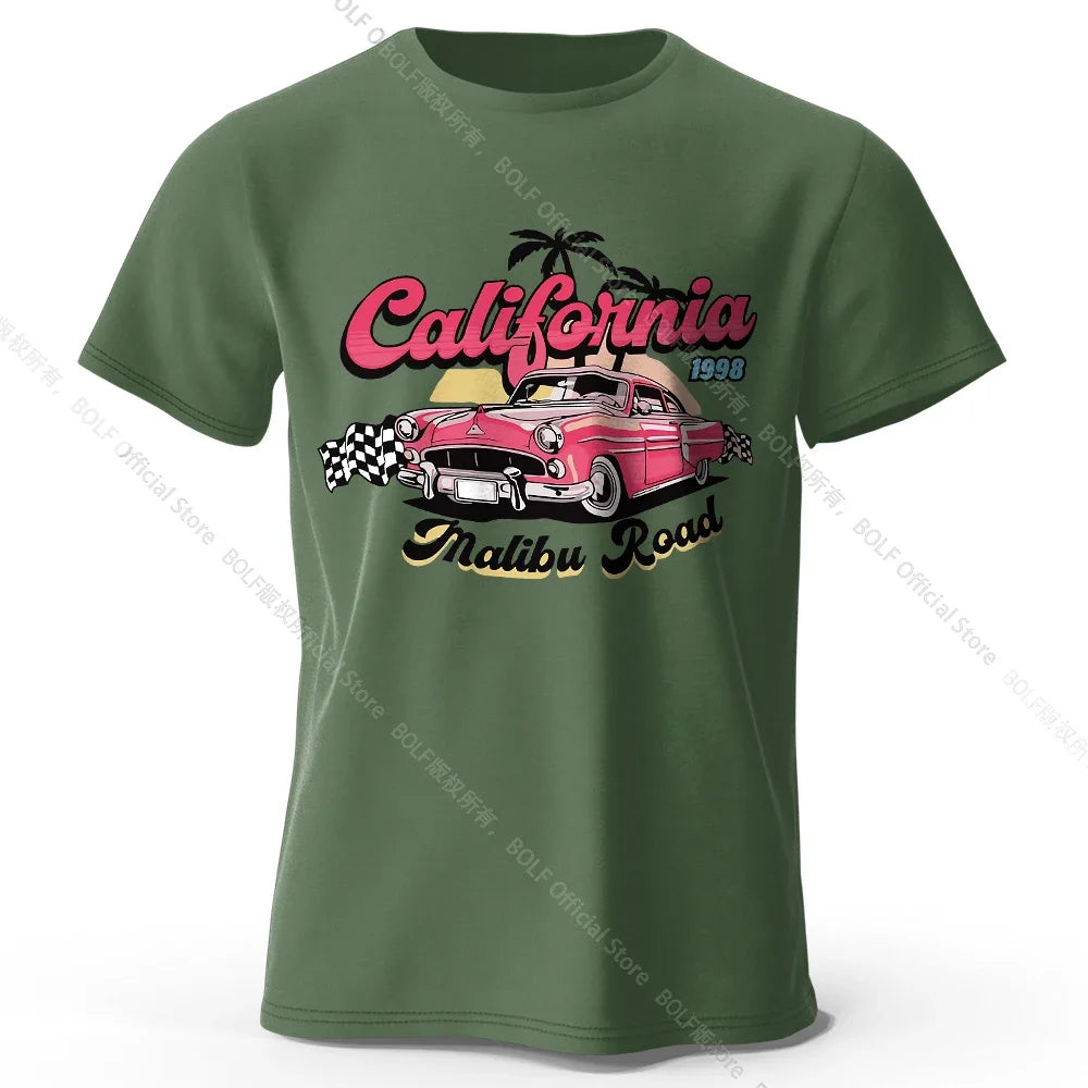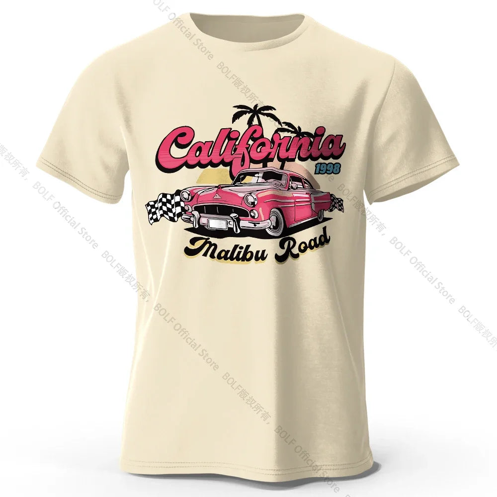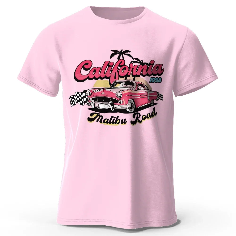 Pink Vintage Car T-Shirt 100% Cotton Retro Vacation Graphic Tee for Women and Girls Summer Holiday Style