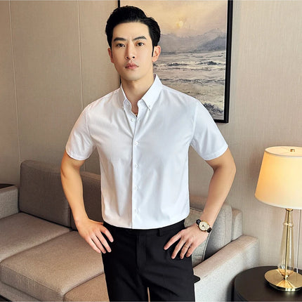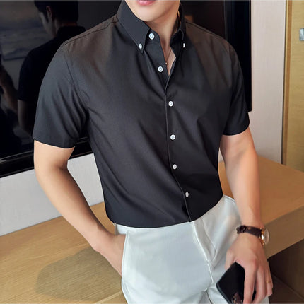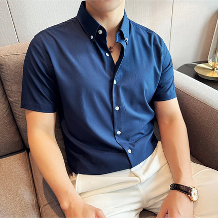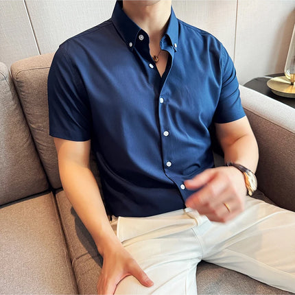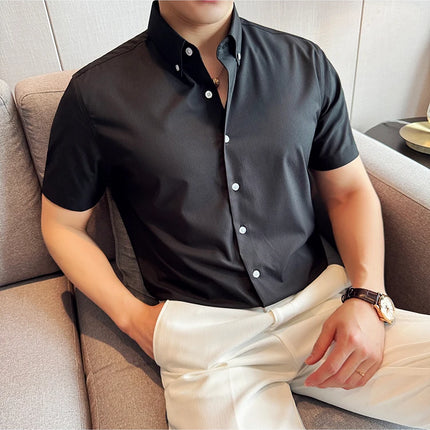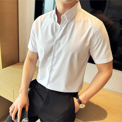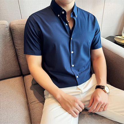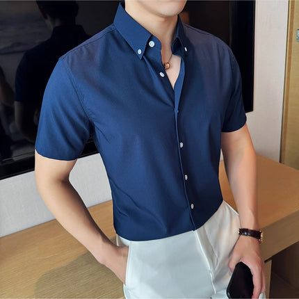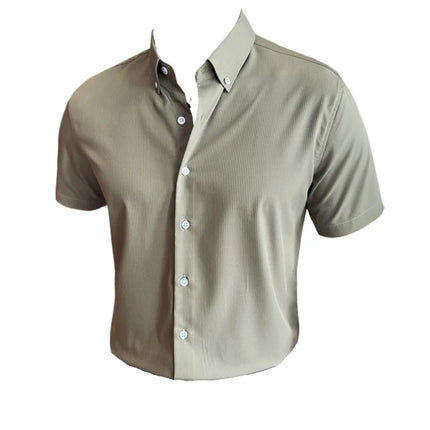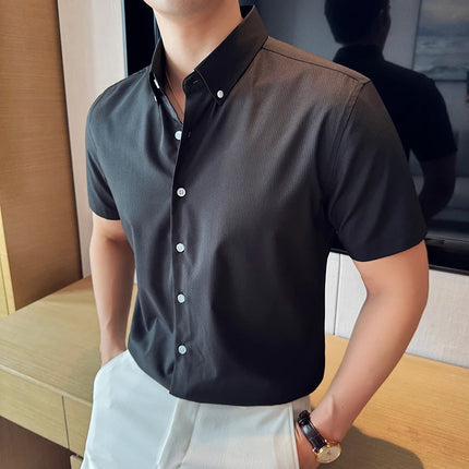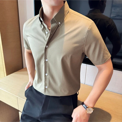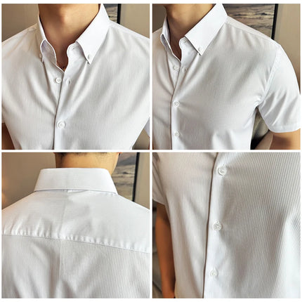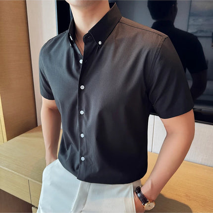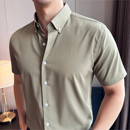 Plus Size 4XL-M High Quality Bamboo Fiber Fabric Dark Stripes Shirts Men Summer Slim Fit Casual Thin Breathable Social Shirt