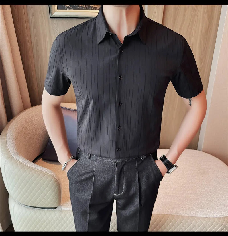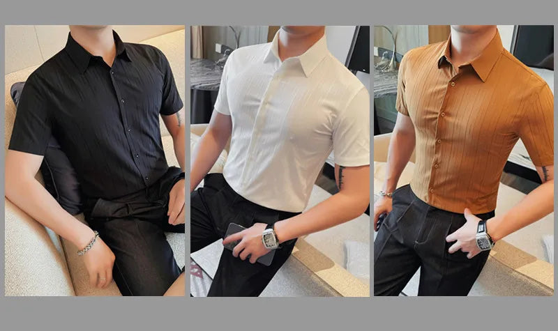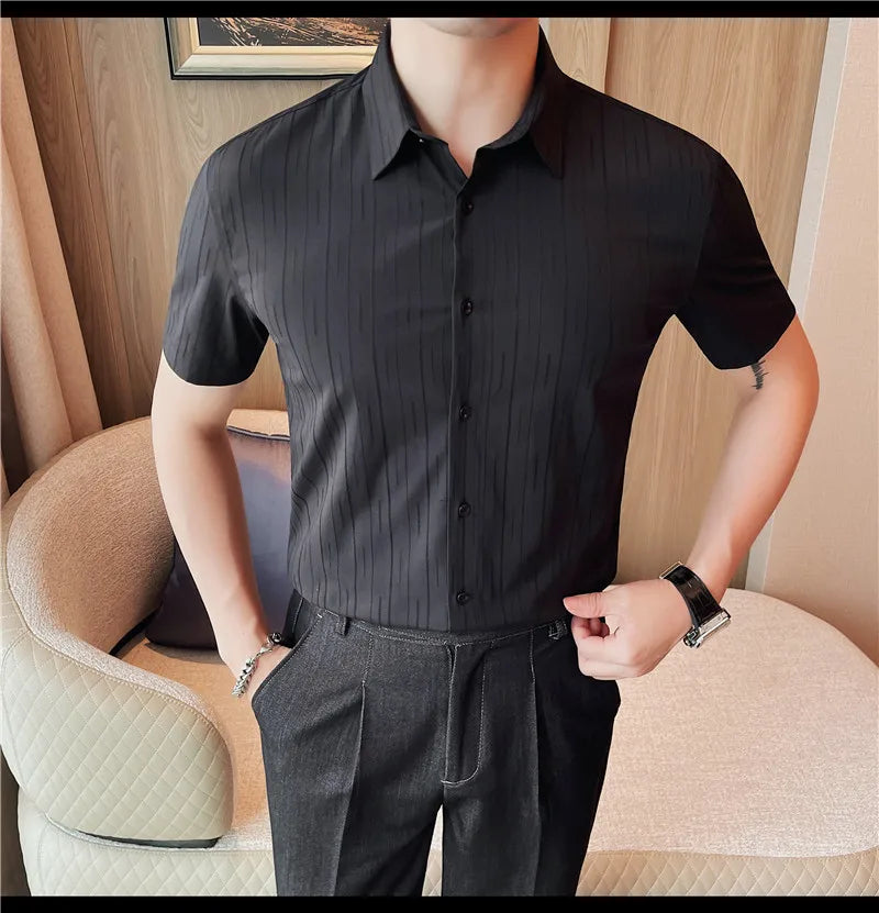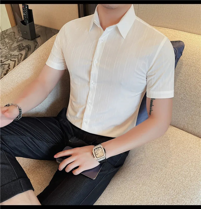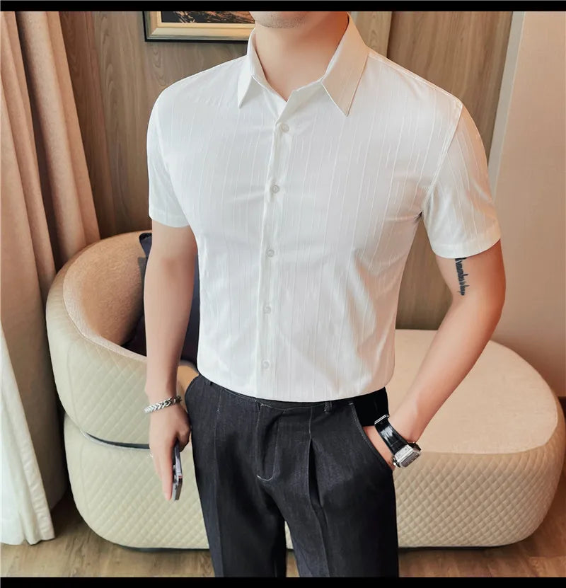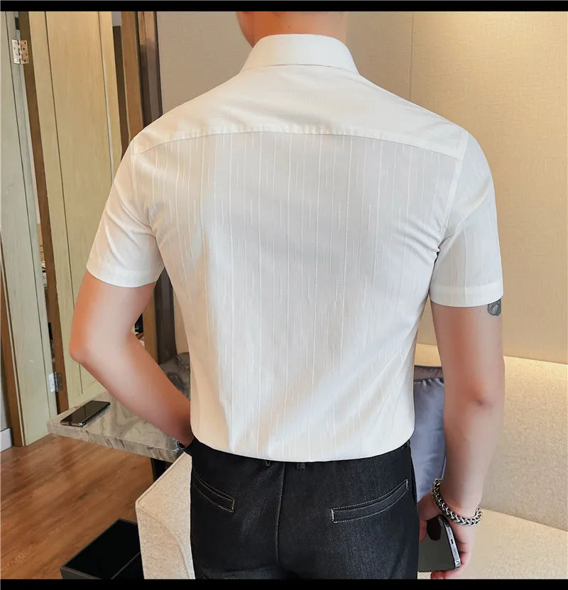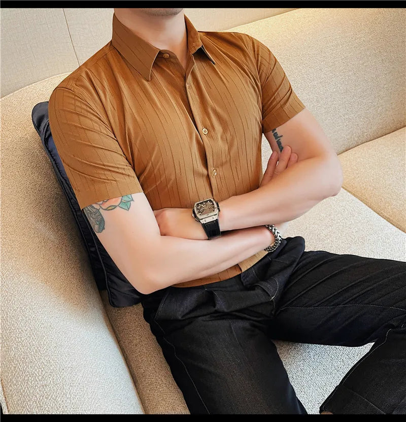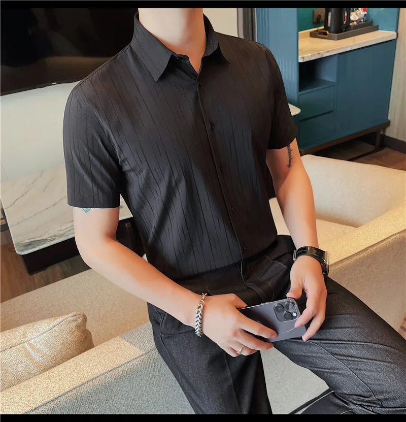 Plus Size 4XL-M Luxury Summer Fashion Striped Shirts Men's Short Sleeved Slim Fit Casual Business Shirt 2024 New Club Outfits