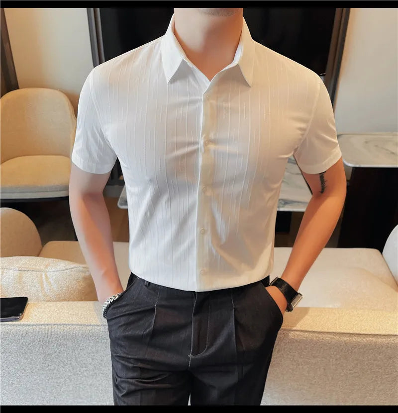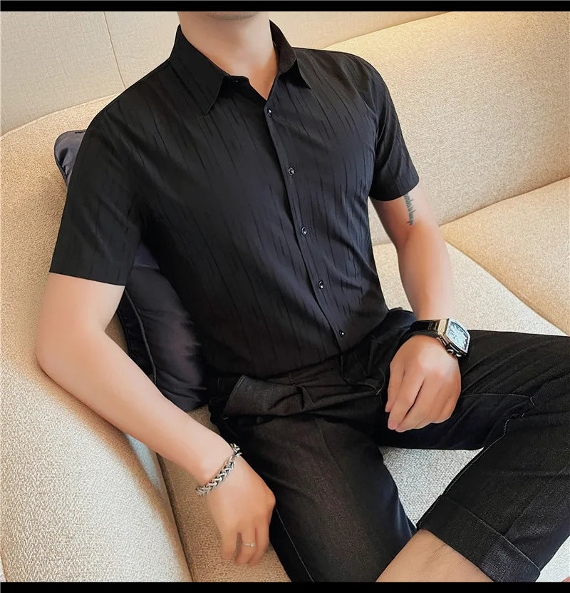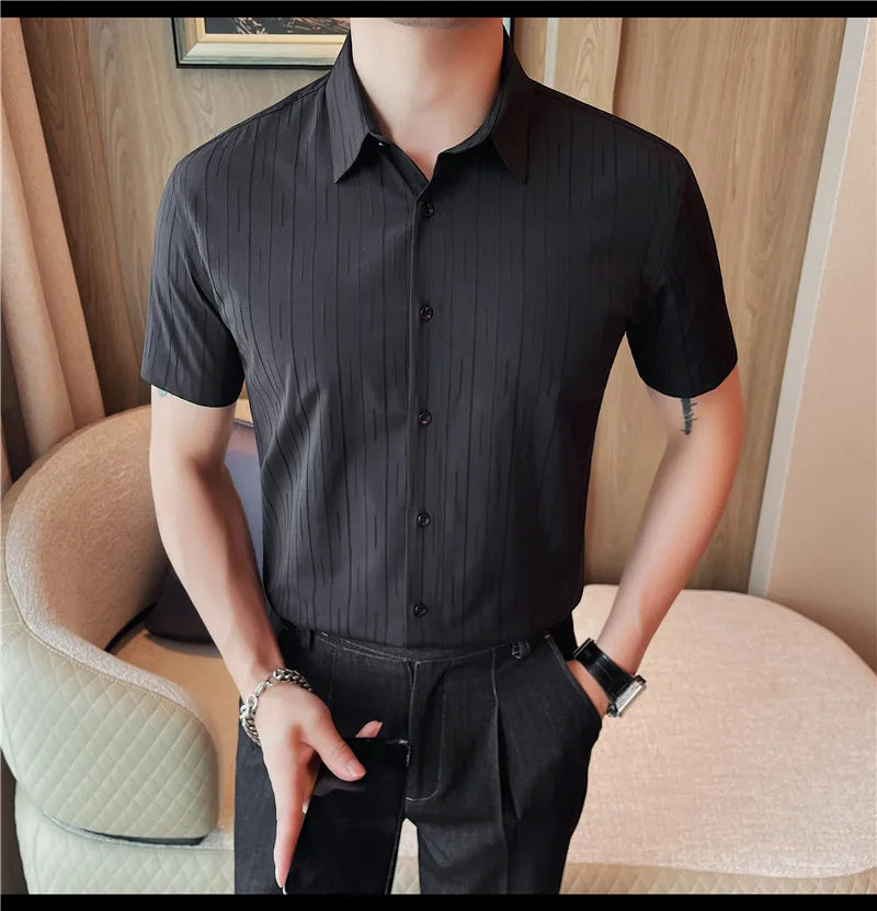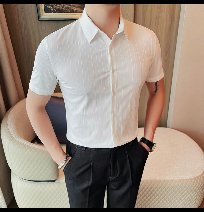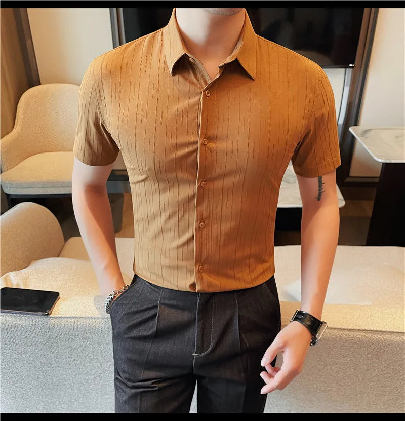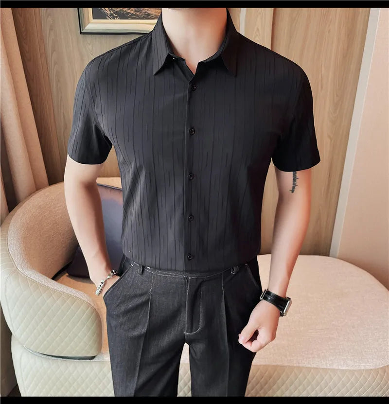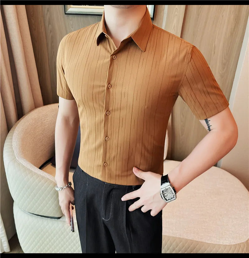 Plus Size 4XL-M Luxury Summer Fashion Striped Shirts Men's Short Sleeved Slim Fit Casual Business Shirt 2024 New Club Outfits