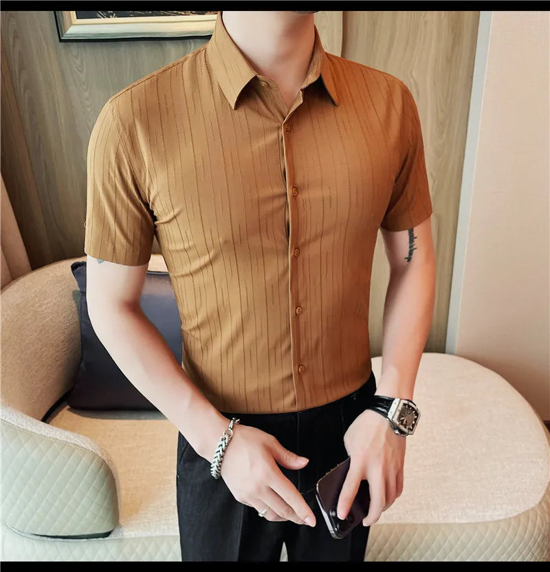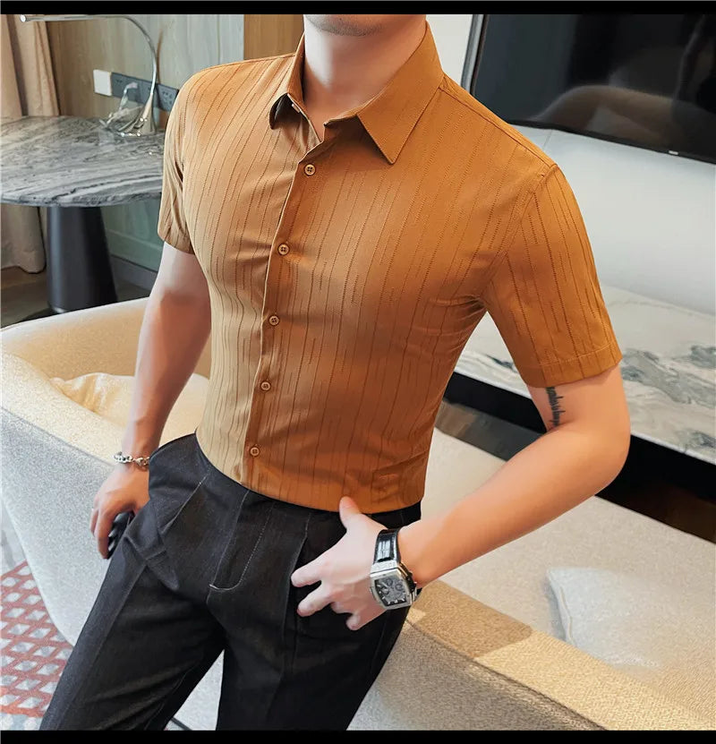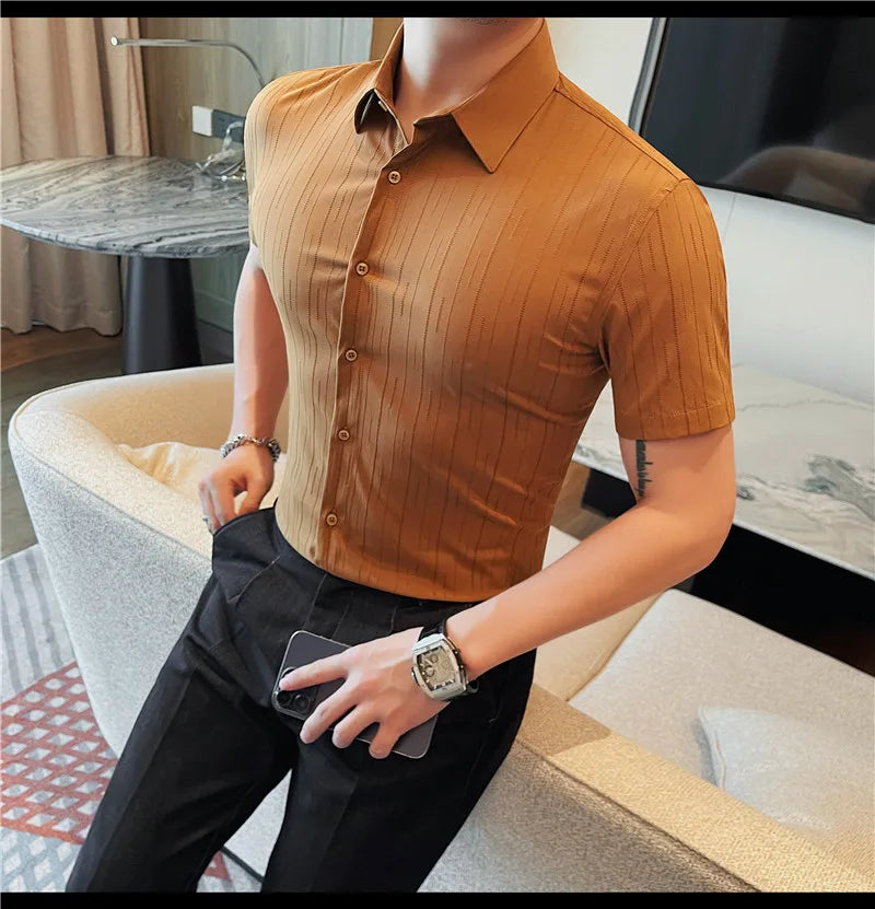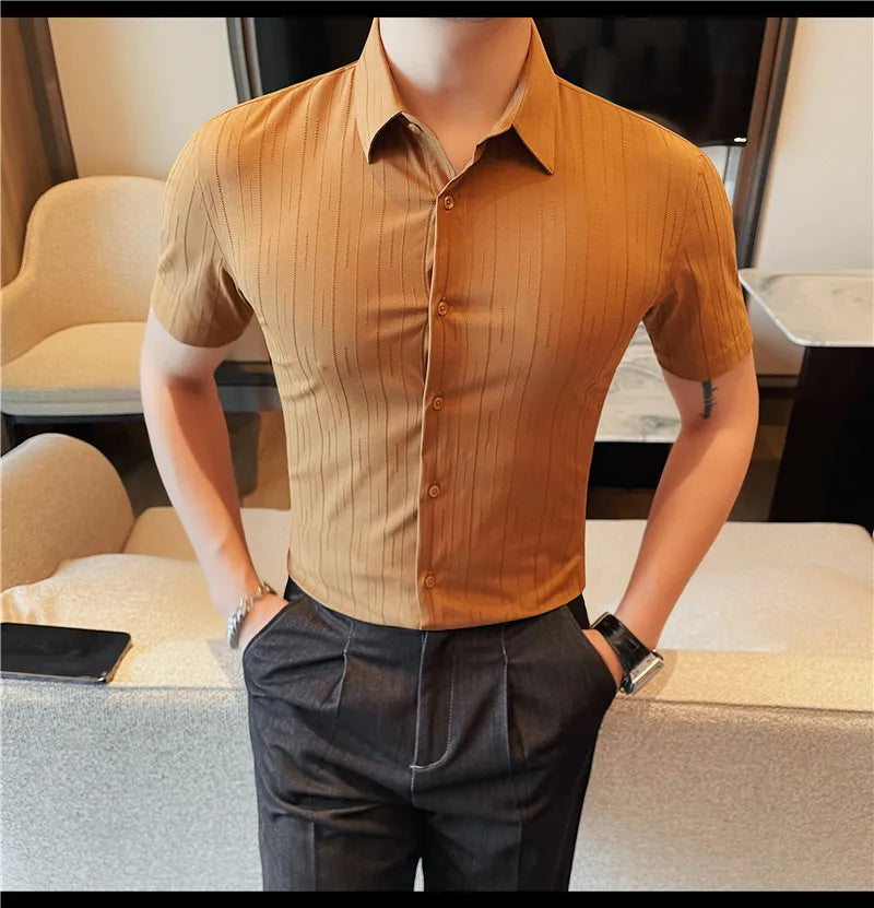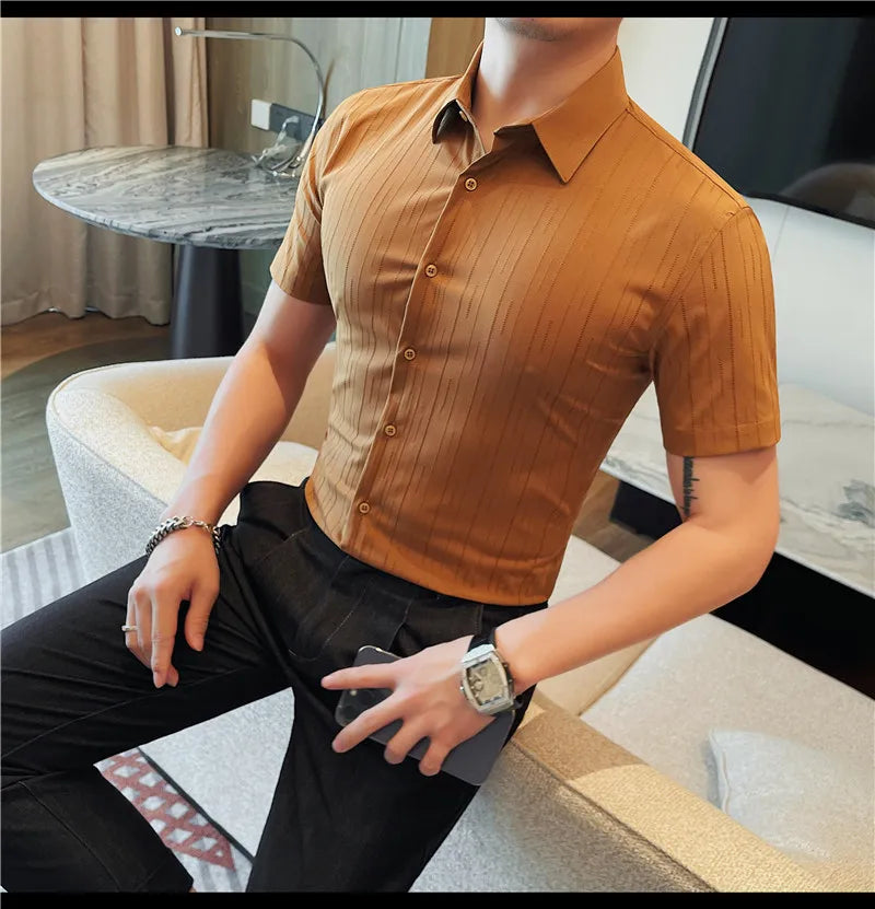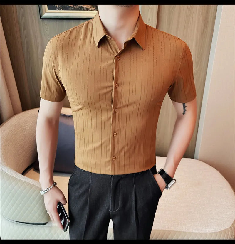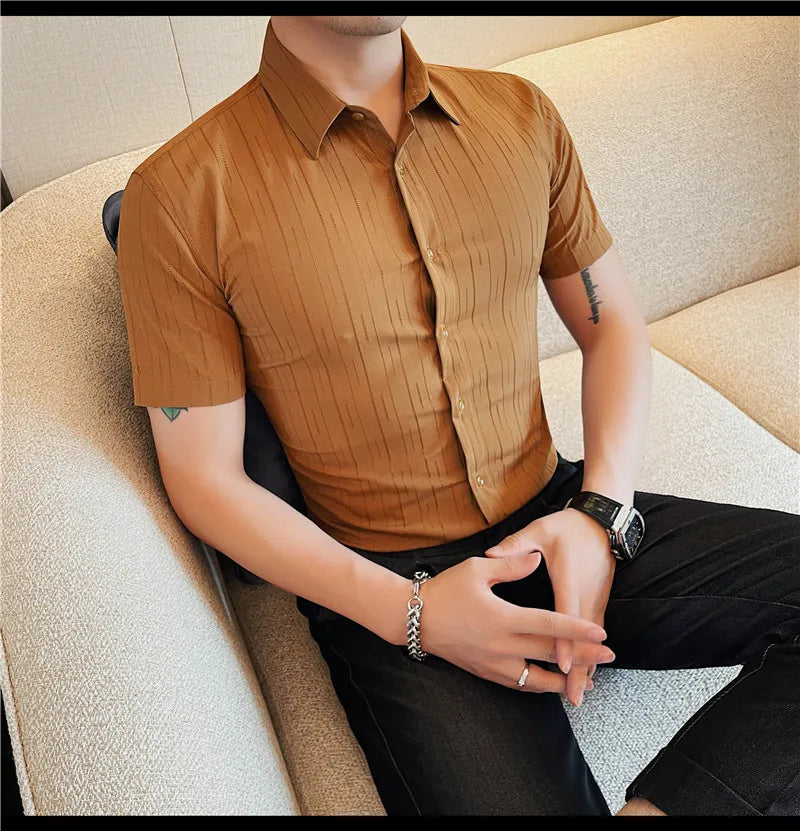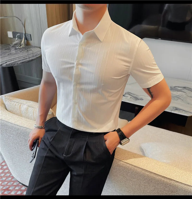 Plus Size 4XL-M Luxury Summer Fashion Striped Shirts Men's Short Sleeved Slim Fit Casual Business Shirt 2024 New Club Outfits