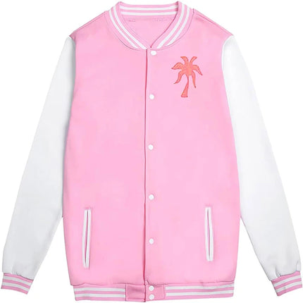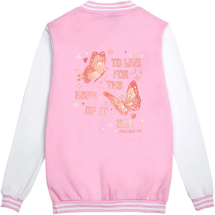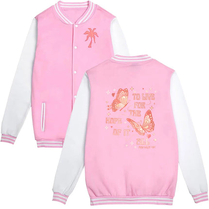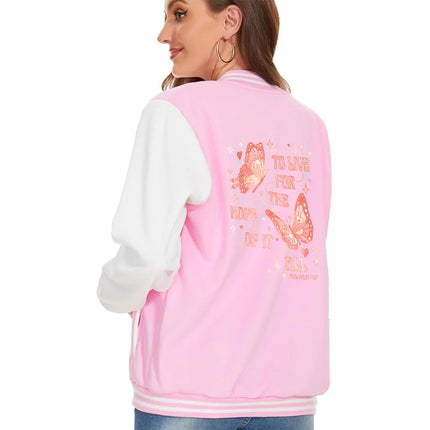 Positive Quote Letter Graphic Print Baseball Jacket Women Pink Palm Puff Butterfly Y2K Design Overcoat Butterfly Lover Jackets