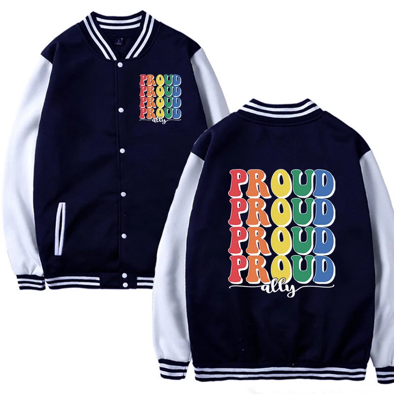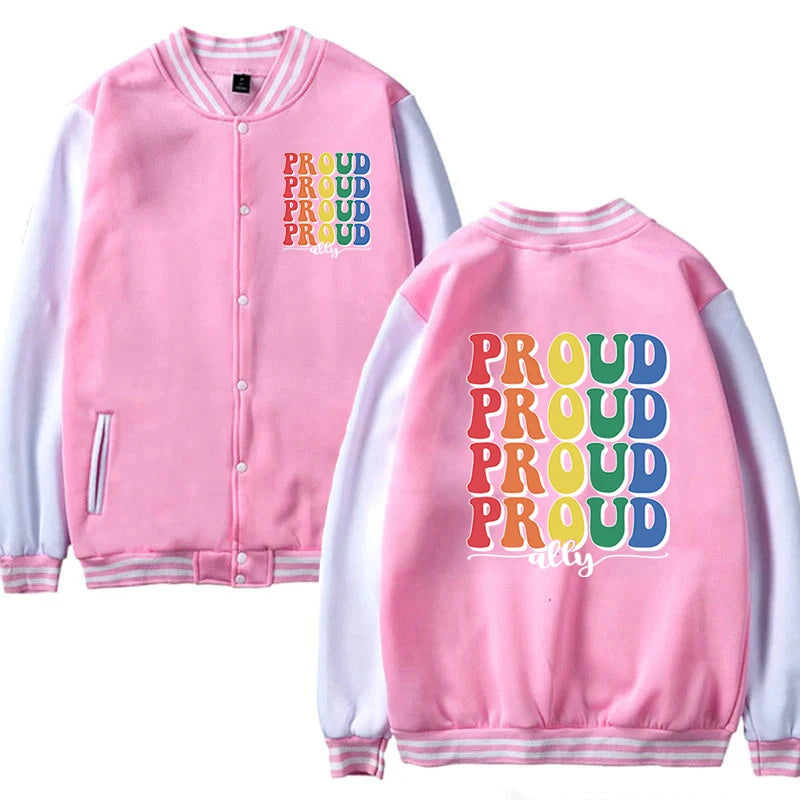 Proud Trendy Baseball Uniform Women Jacket Loose Vintage Coats LGBT Overcoats Autumn Winter LGBT Gay Pride Motorcycle Jacket