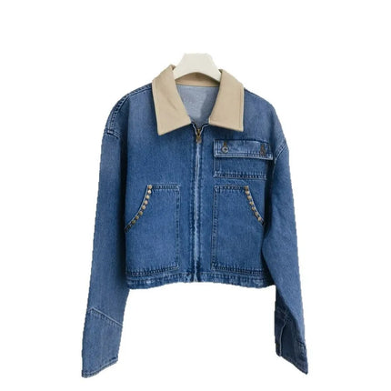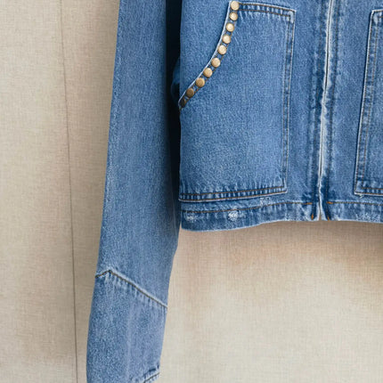 Rivet Pocket Splicing Denim Short Jacket Same as Celebrity 2025 Spring Outfit New Style Jackets for Women Coat for Women