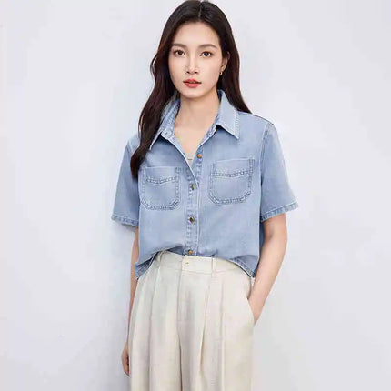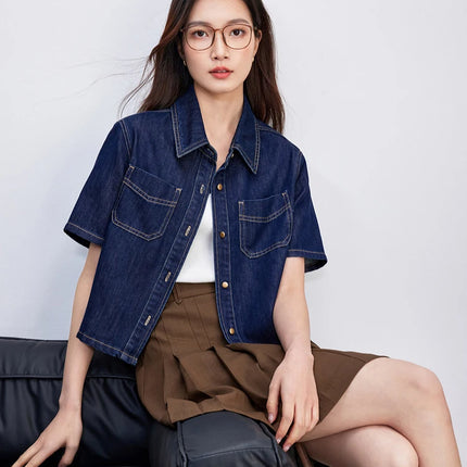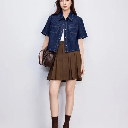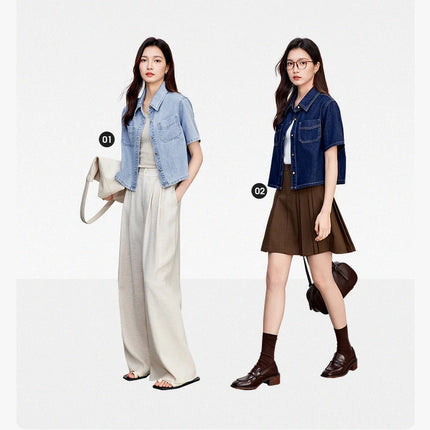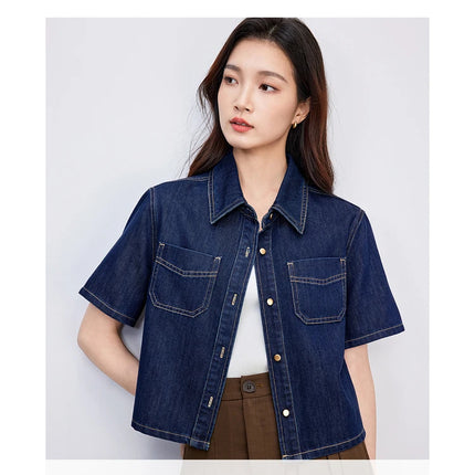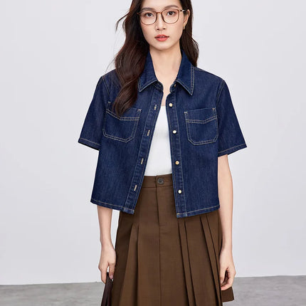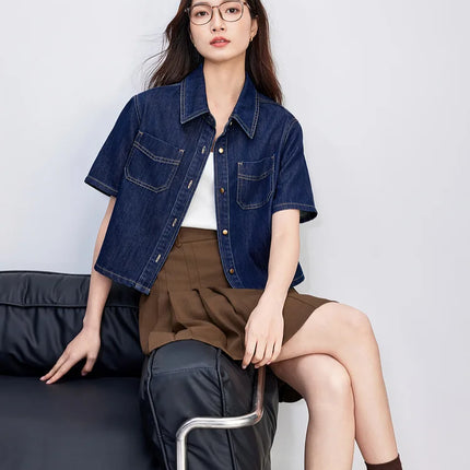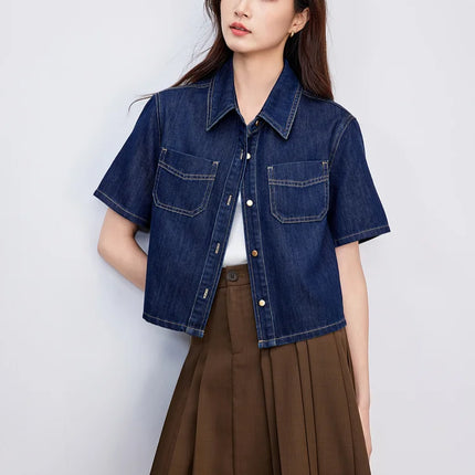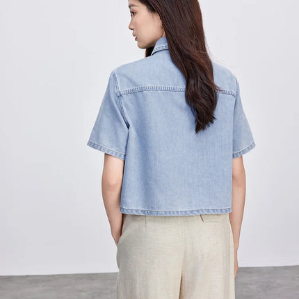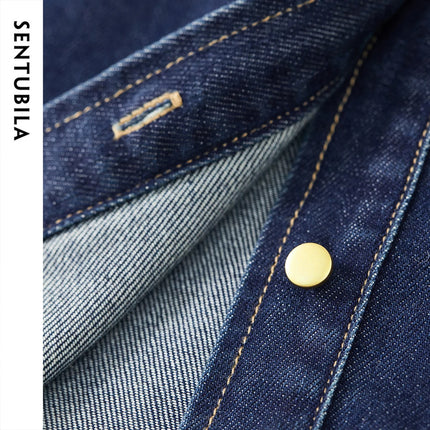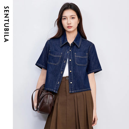 SENTUBILA Lyocell Denim Women Jackets 2025 Retro Fashion Short Streetwear Button Pockets Casual Female Outerwear W52W59414