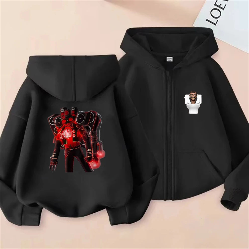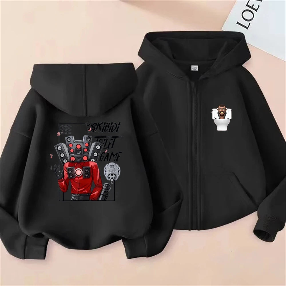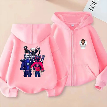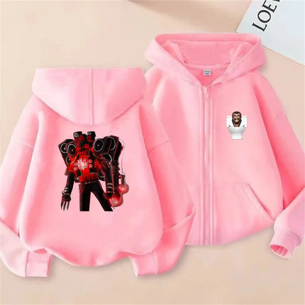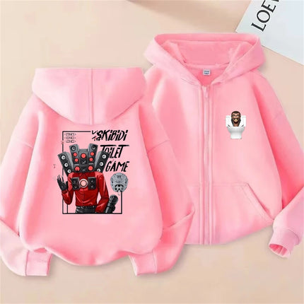 Skibidi Toilet print Children Zipper coat Hoodies Girl pink Boy black Kids Clothing Casual Tops Spring Autumn Sweatshirts