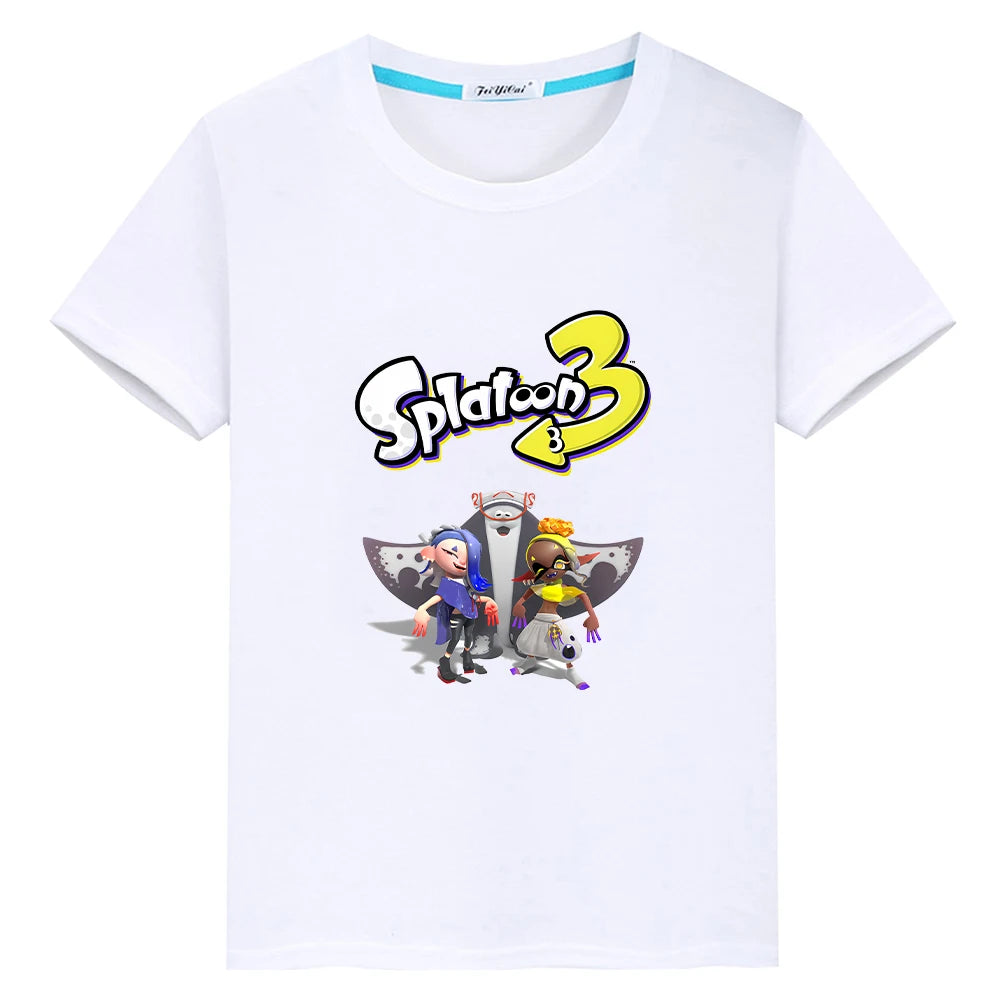 Splatoon print t shirt for kids boy 10year Cartoon 100%Cotton Short anime Tees Tops pride tshirt y2k one piece girls clothes