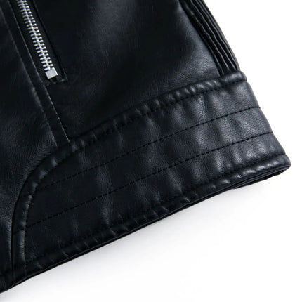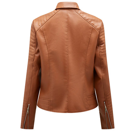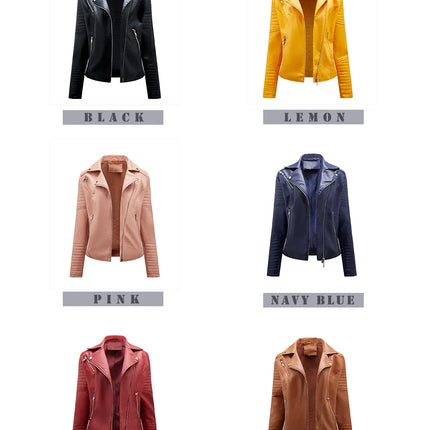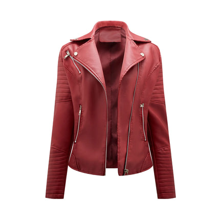 Spring and Autumn short women's leather jacket, Slim lapel biker suit, oblique zipper jacket women's coat