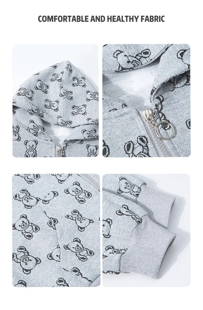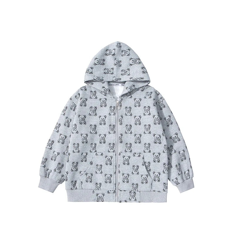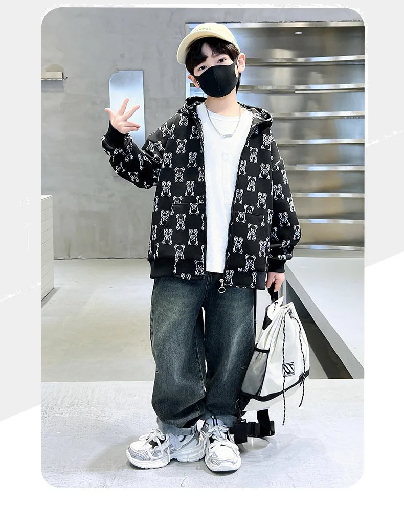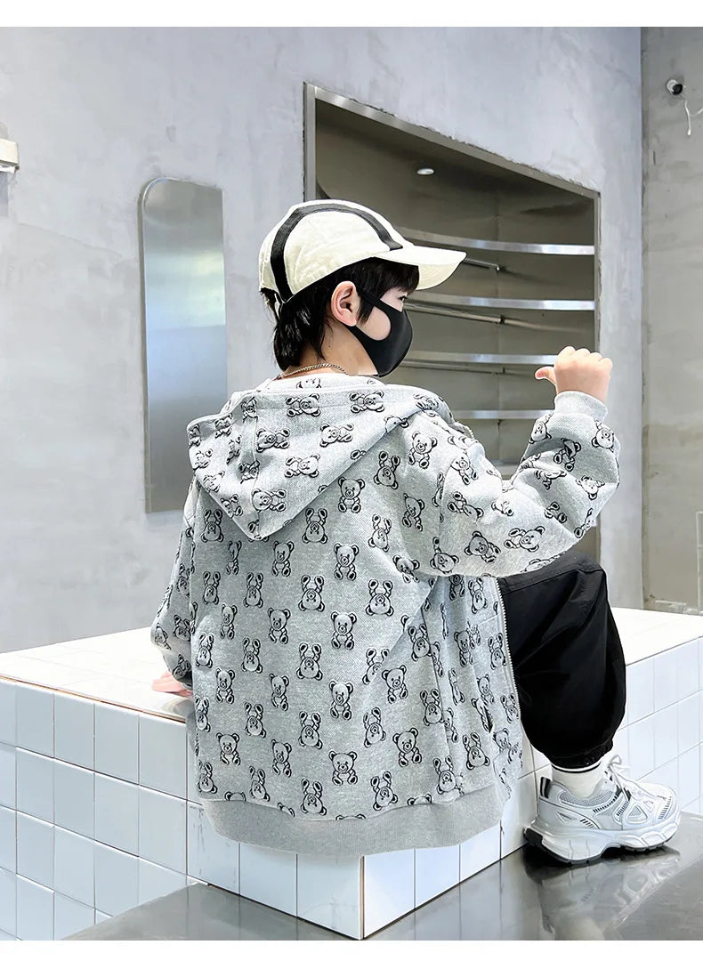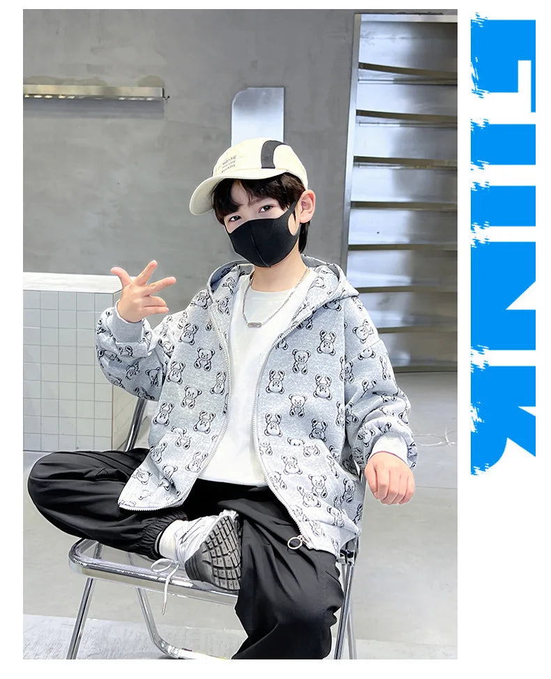 Spring Autumn Boys All-Over Printed Zip Sweatshirt Jackets School Kids Track Hoodie Coat Child Outfit Tops Workout Jumper 3-14Yr