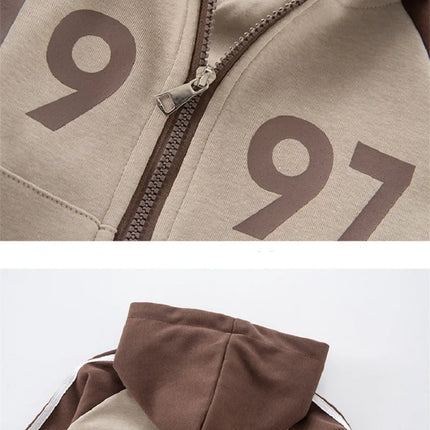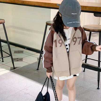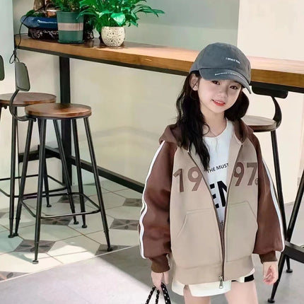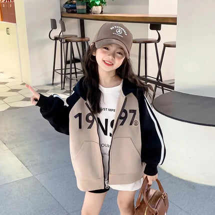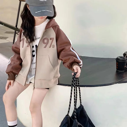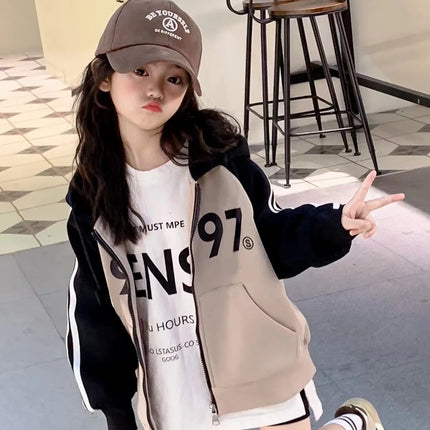 Spring Autumn Girls Cotton Contrast Striped Zip Sweatshirt Jacket School Kids Track Hoodie Child Work Jumper Coat Tops 3-16Years