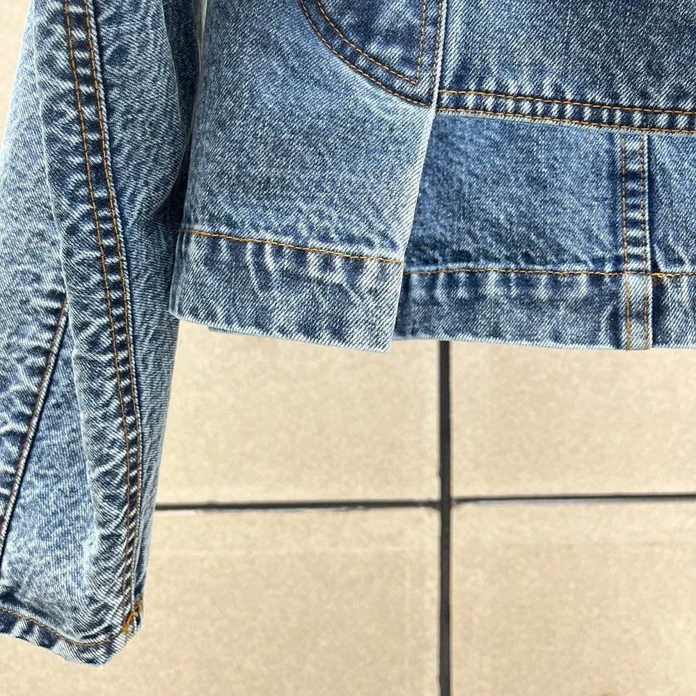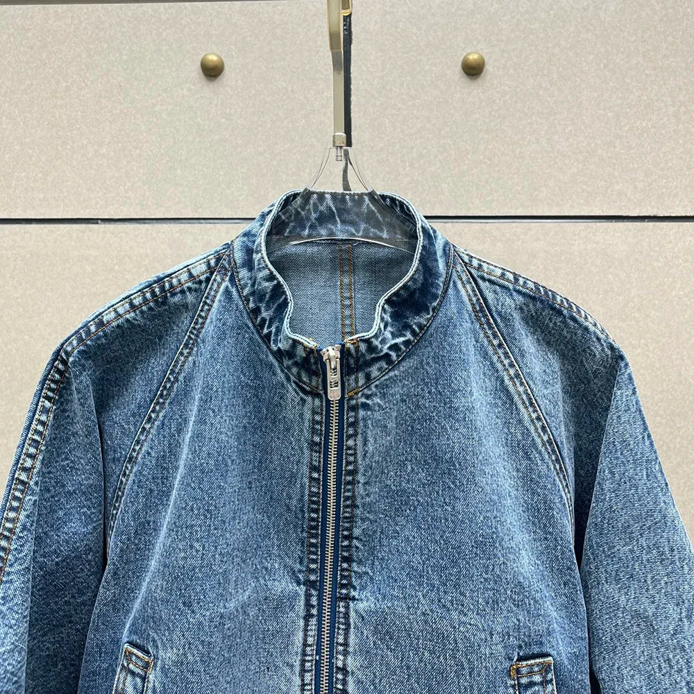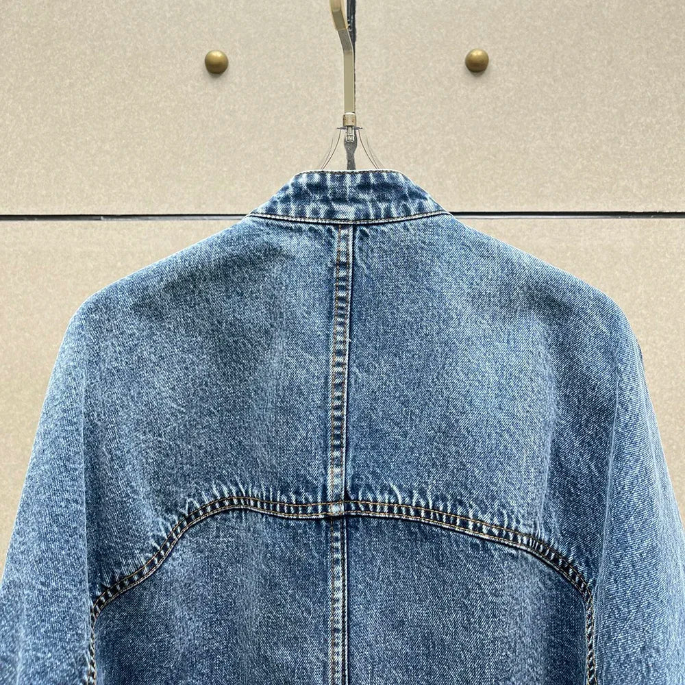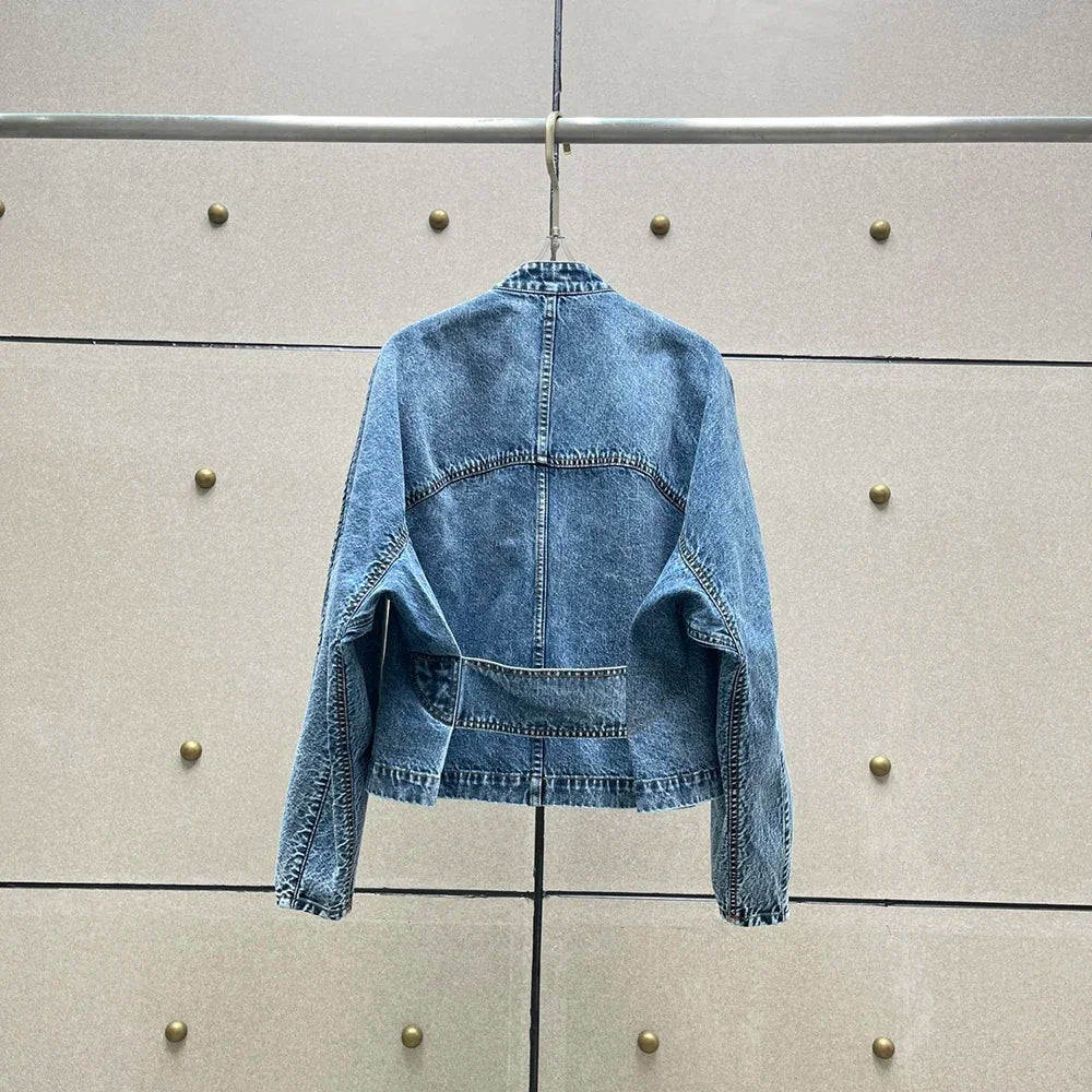 Spring New Round Collar Zipper Double Pocket Denim Coat for Women's Fashion Back Waist Make Old Washed Water Blue Coat