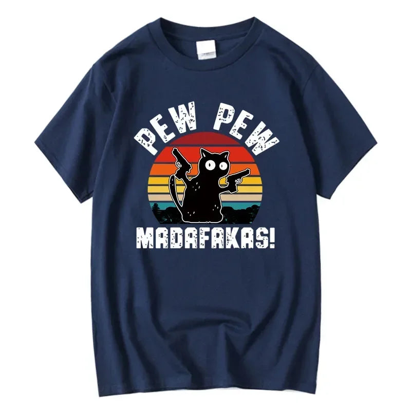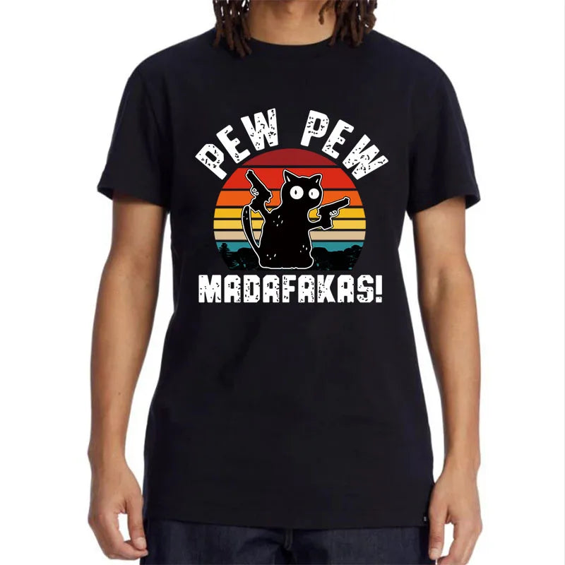 Summer Casual Men's High Quality T-shirt 100% Cotton Cool Funny Cat Printed T-shirt Casual O-neck Loose for Men T Shirt Tees Top
