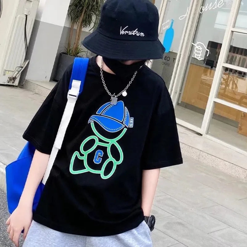 Summer Cool Kids Boy Casual Tops Cartoon Print Trendy Children's T-shirt Short Sleeve European And American Style Toddler Tees