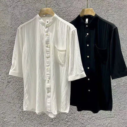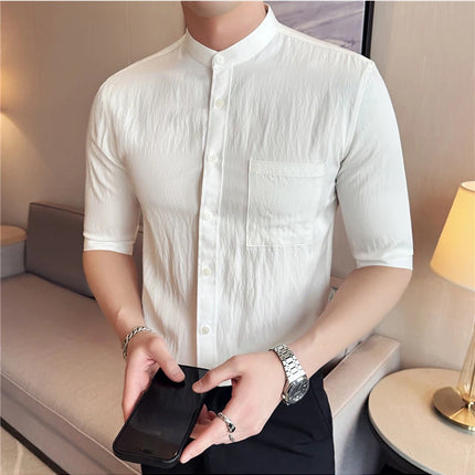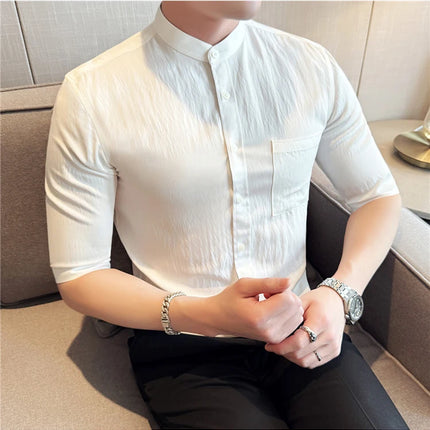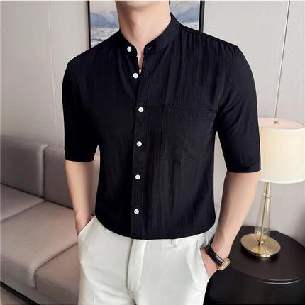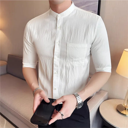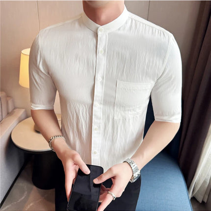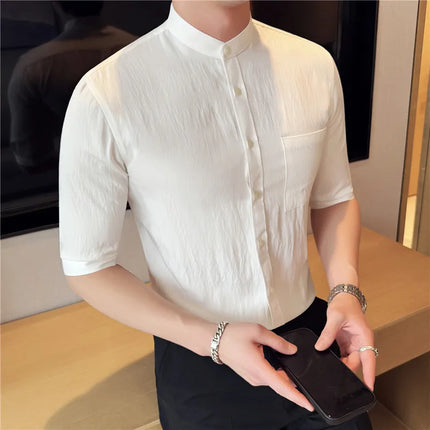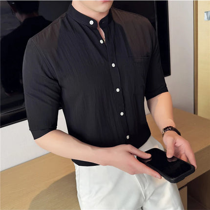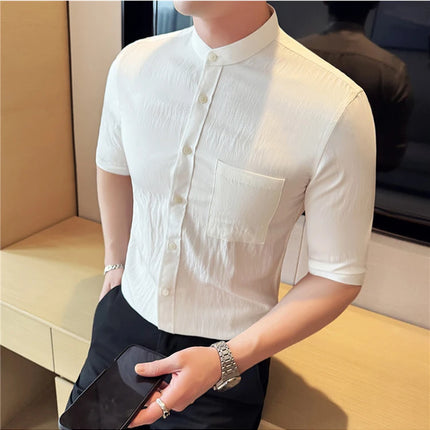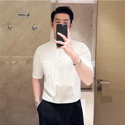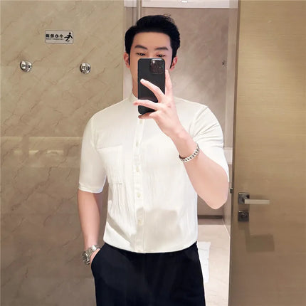 Summer New Chinese Style Stand Up Collar Shirt High Quality Slim Fit Half Sleeved Casual Social Party Shirt Men's Clothing 4XL-M