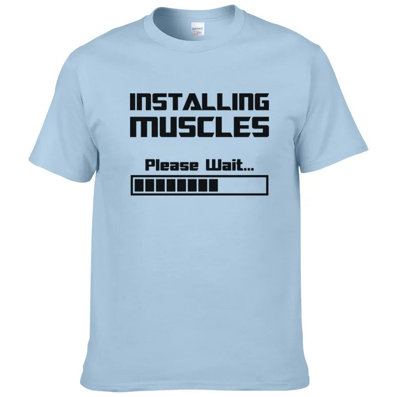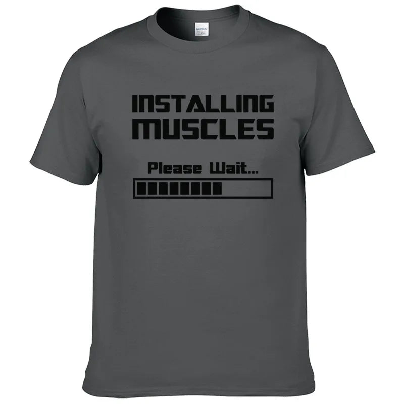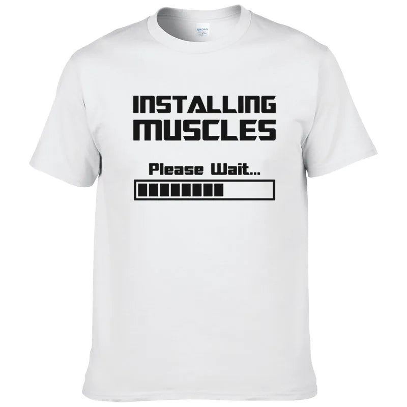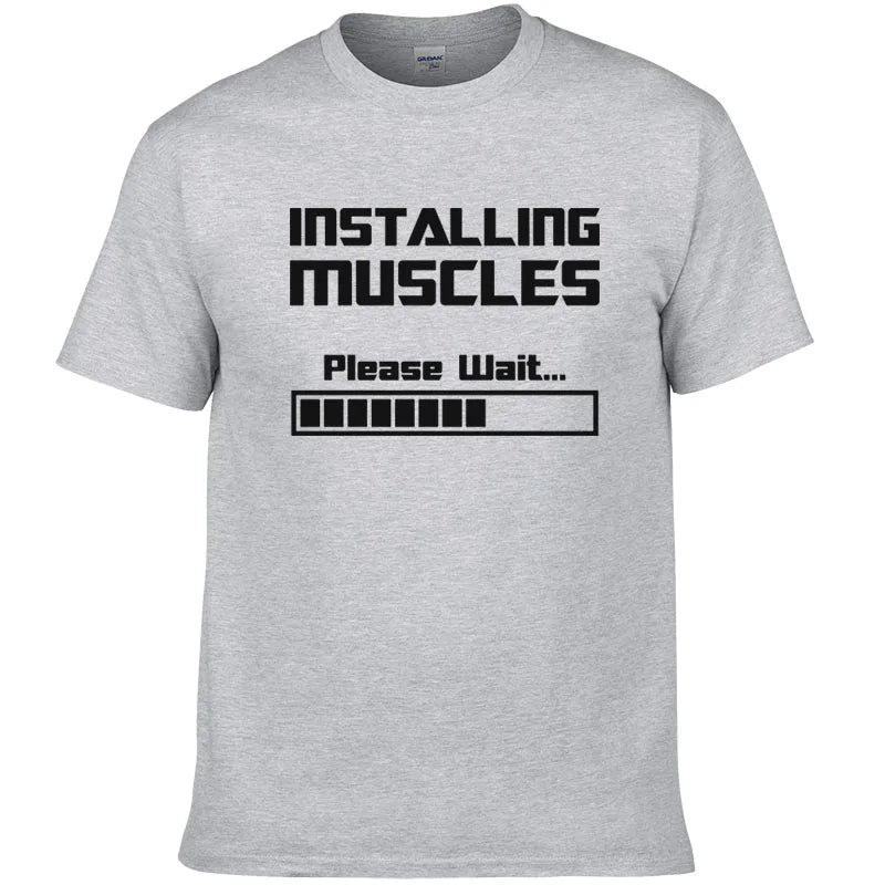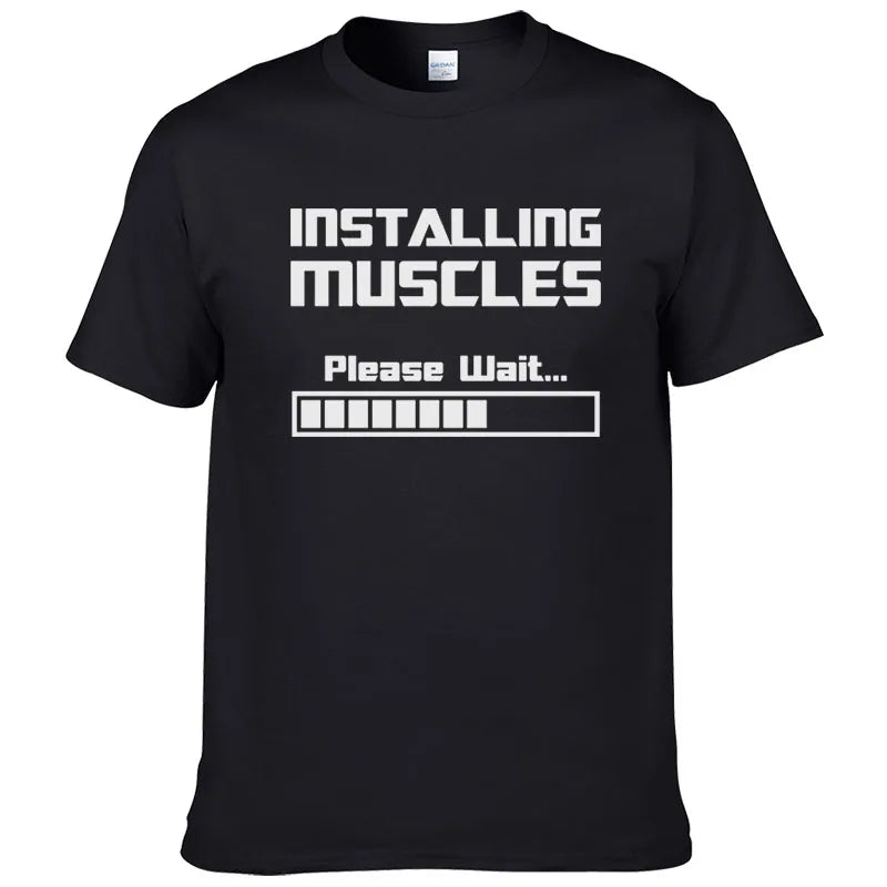 Summer New Tshirts Installing Muscles Please Wait Loading Bar Funny Print T Shirt Men Women Cotton Short Sleeve Cool Tees #310