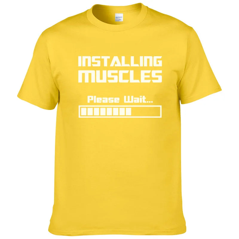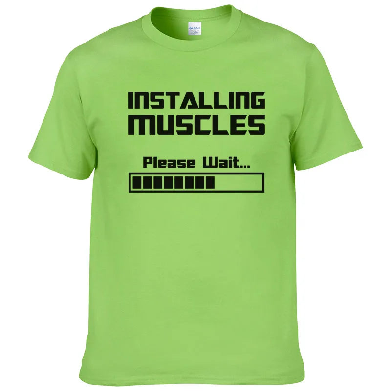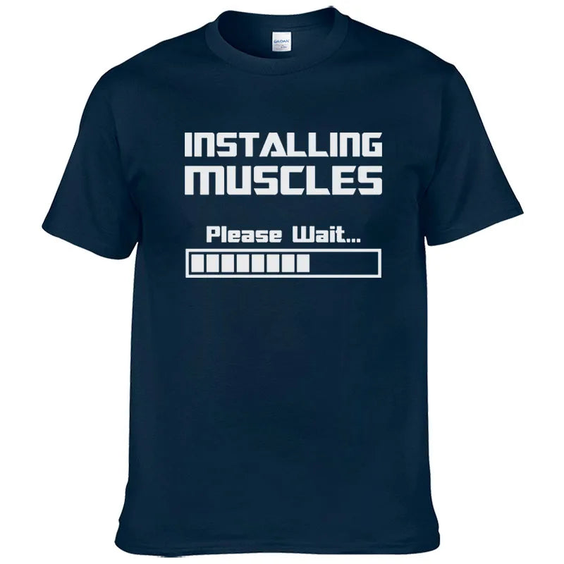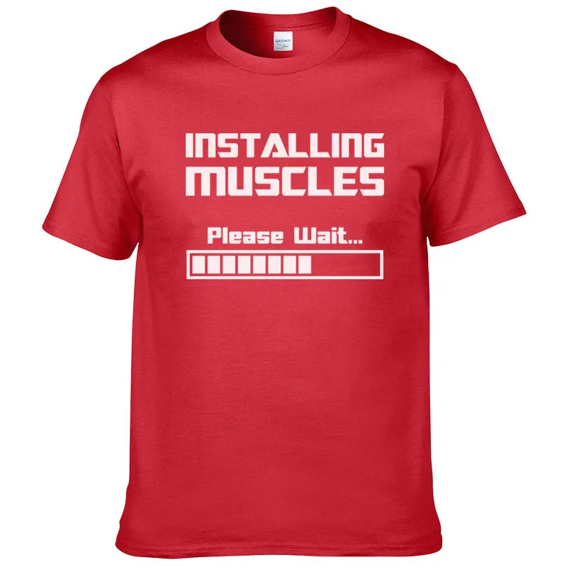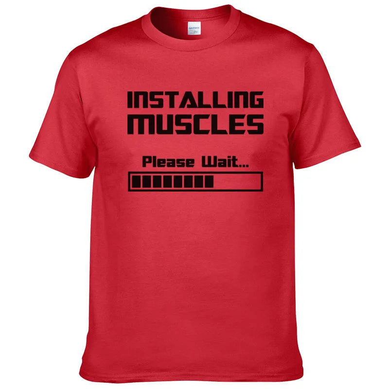 Summer New Tshirts Installing Muscles Please Wait Loading Bar Funny Print T Shirt Men Women Cotton Short Sleeve Cool Tees #310