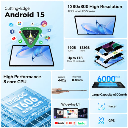 Teclast P30T Android 15 Tablet 10.1" IPS Max 12GB RAM 128GB ROM T606 8-core 6000mAh Keyboard/Case/Mouse/Stylus/Headphone/Stand