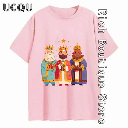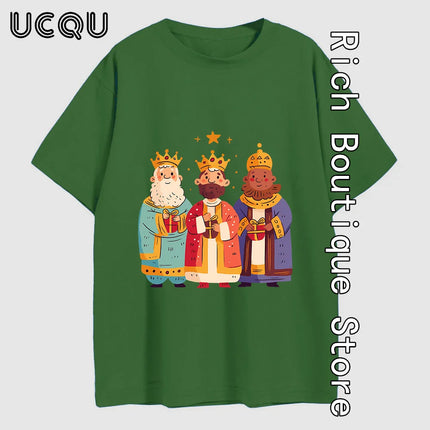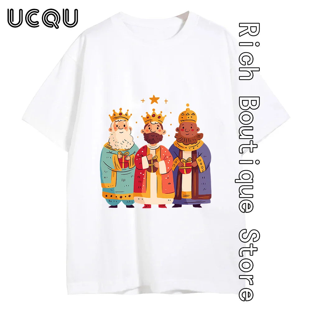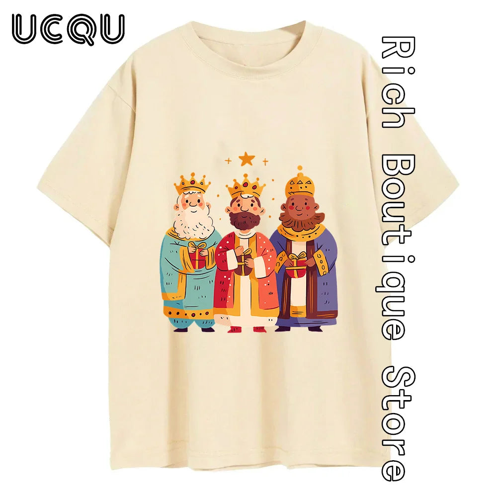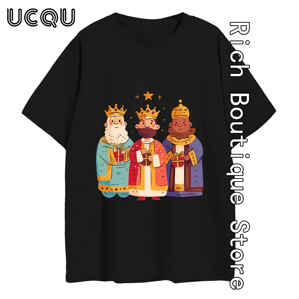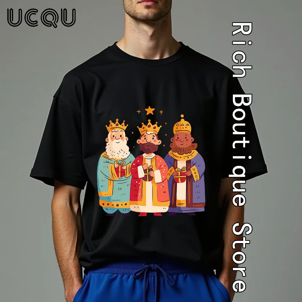 Three Kings with Gifts T-shirt Men Happy Epiphany Cotton Tops Tees Fashion Short Sleeve Clothing Daily Outfit Streetwear